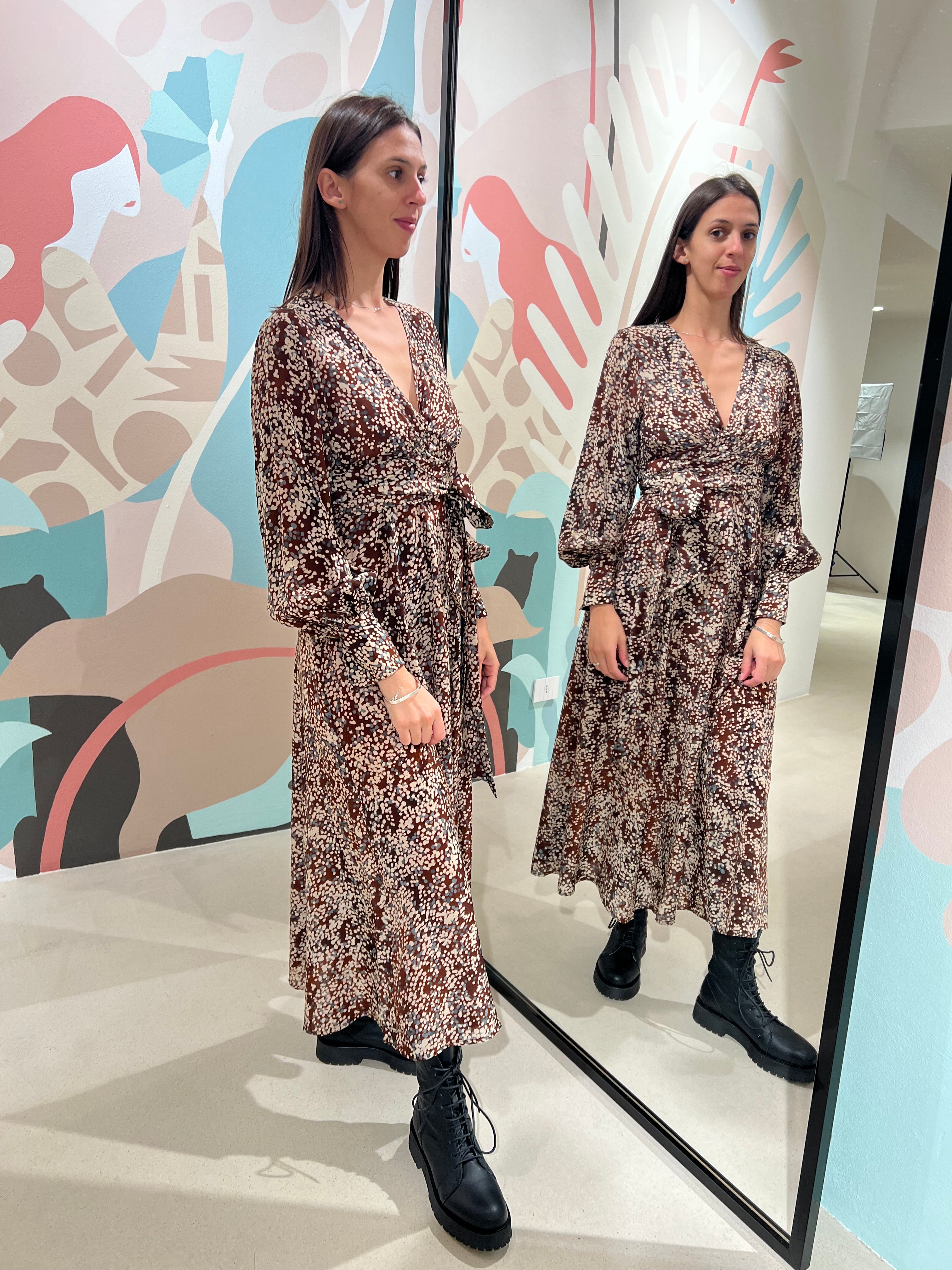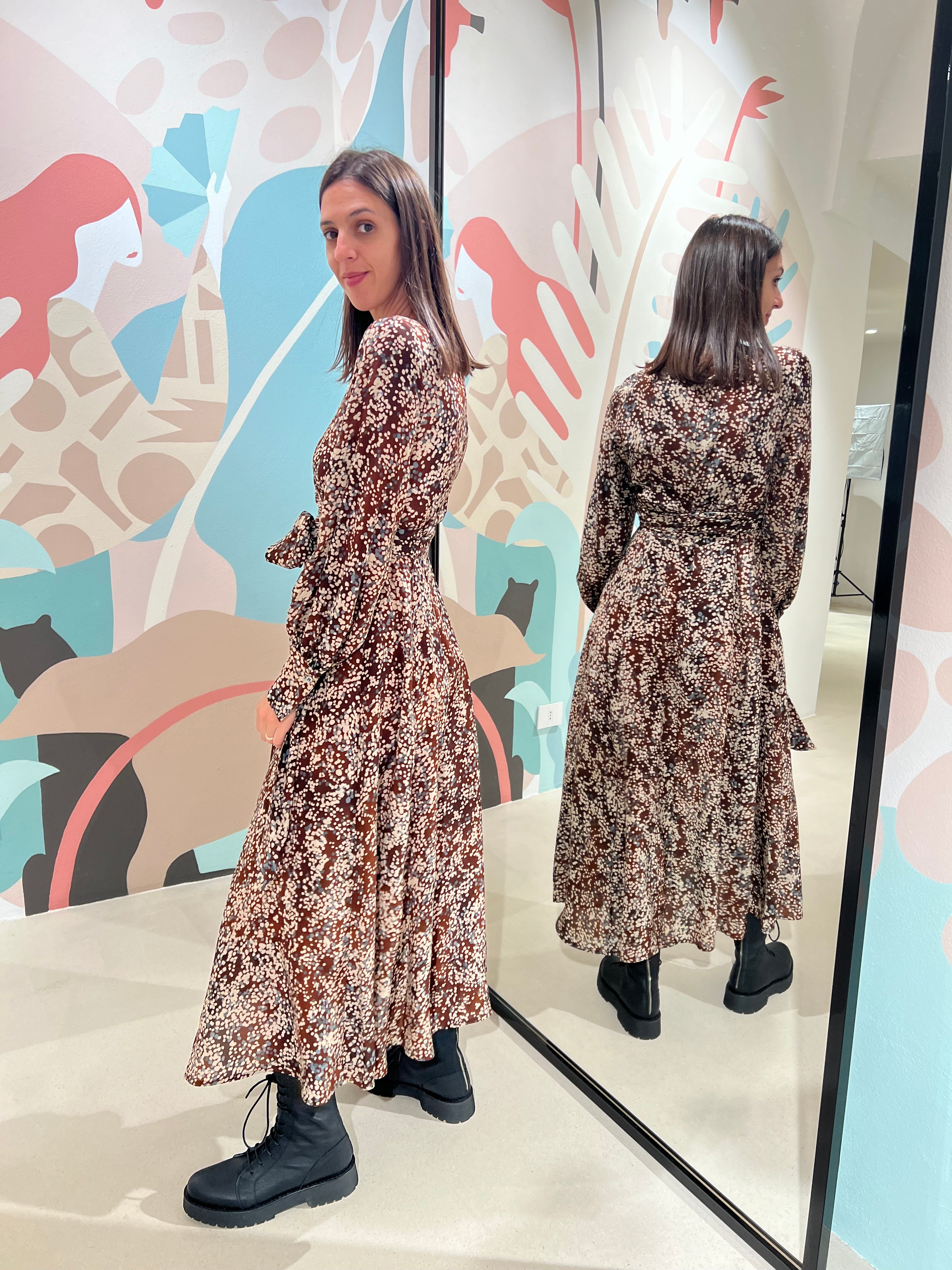 Abito lunghezza midi in viscosa con fusciacca in vita
