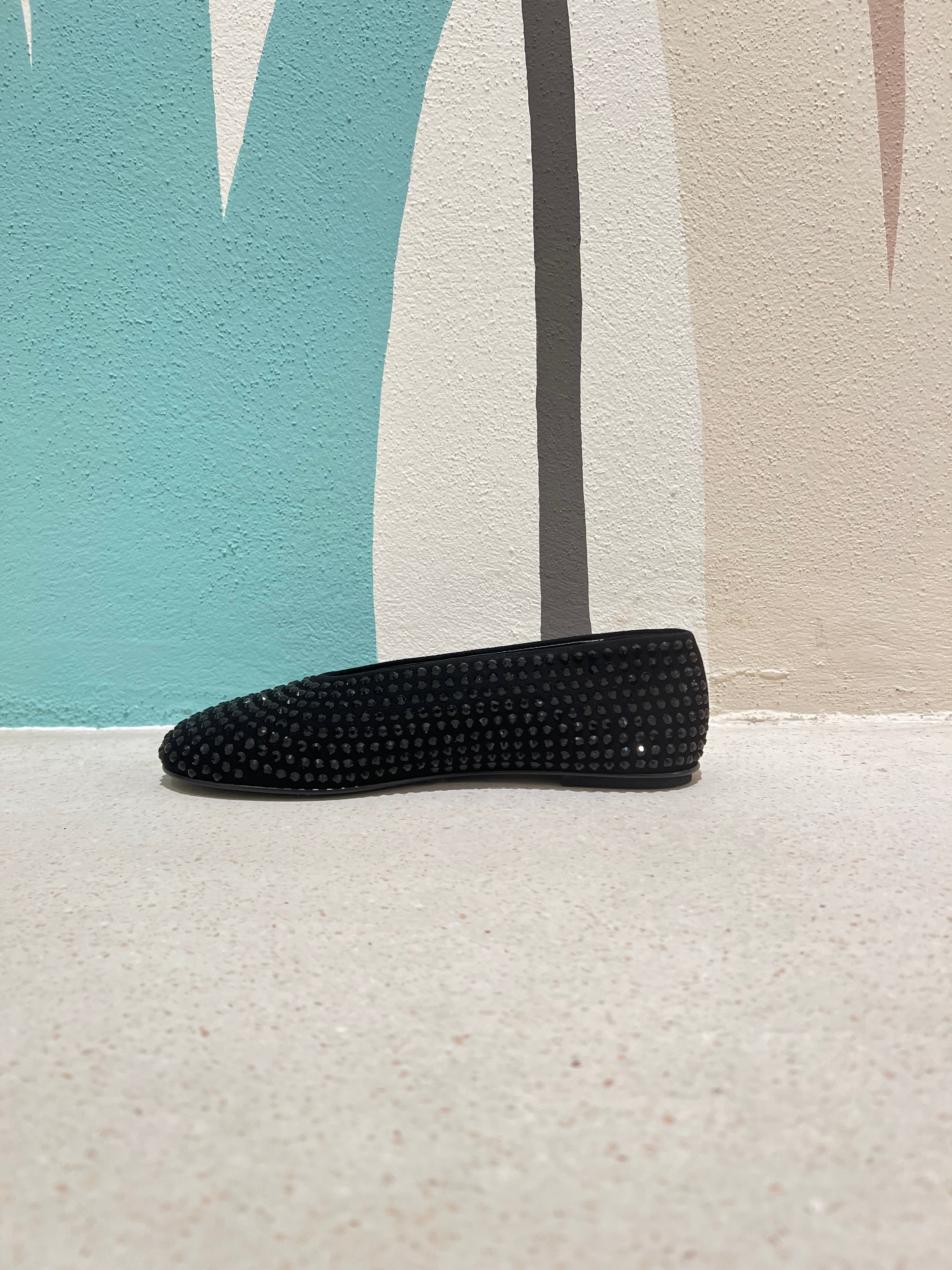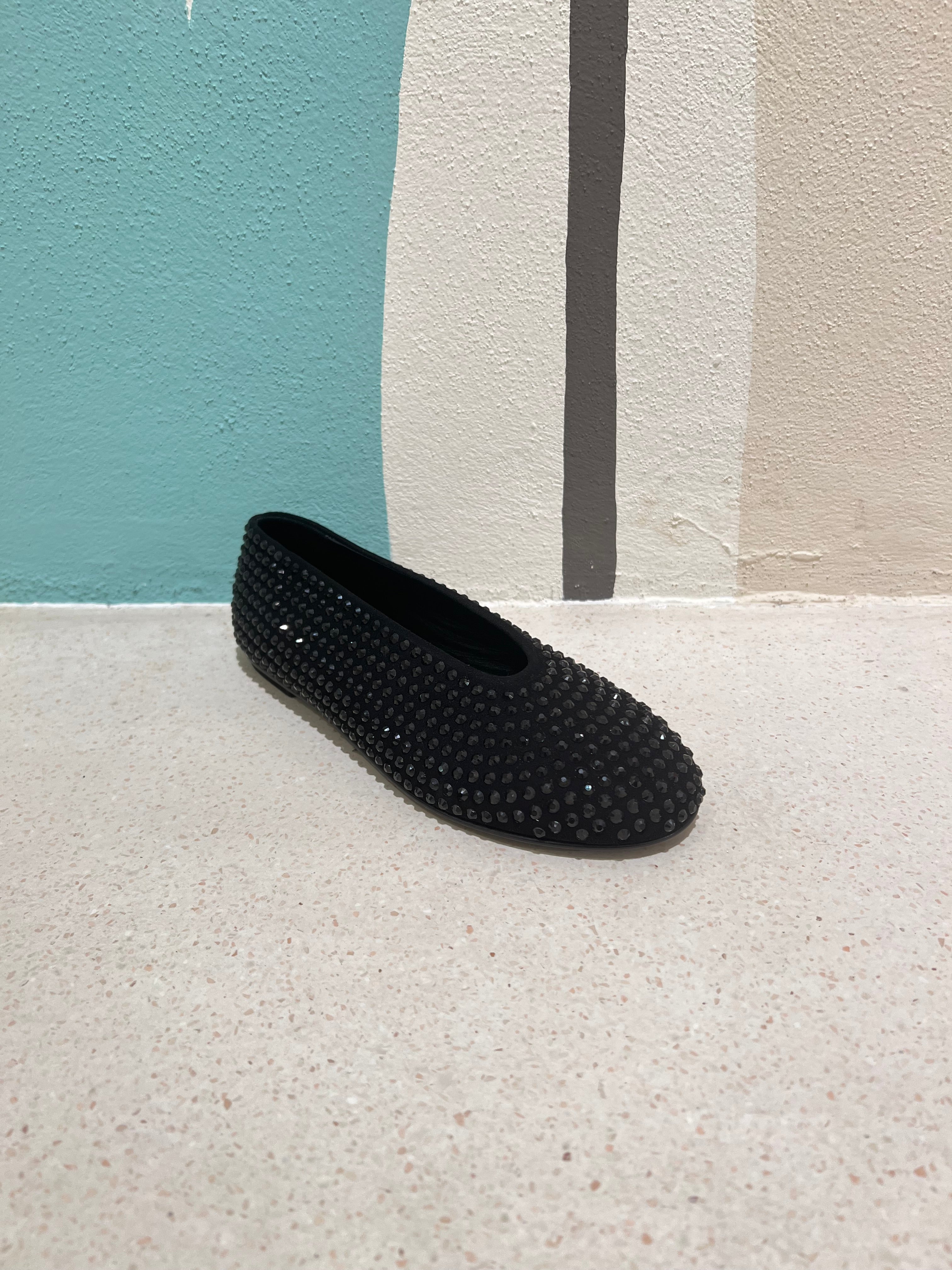 Ballerina bassa senza laccetto con dettaglio strass tono su tono