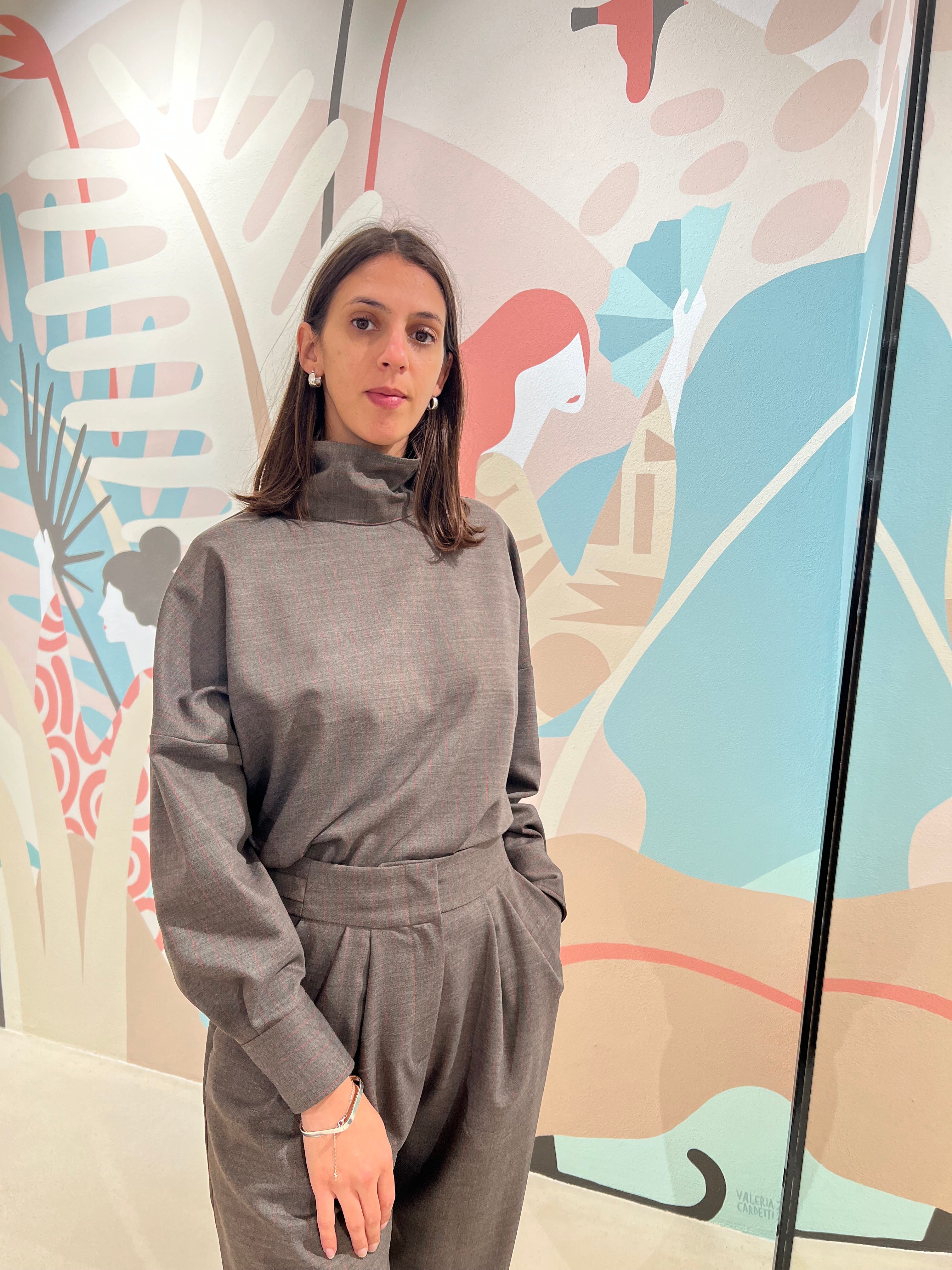 Blusa a collo alto maxi quadro con bottoni posteriori