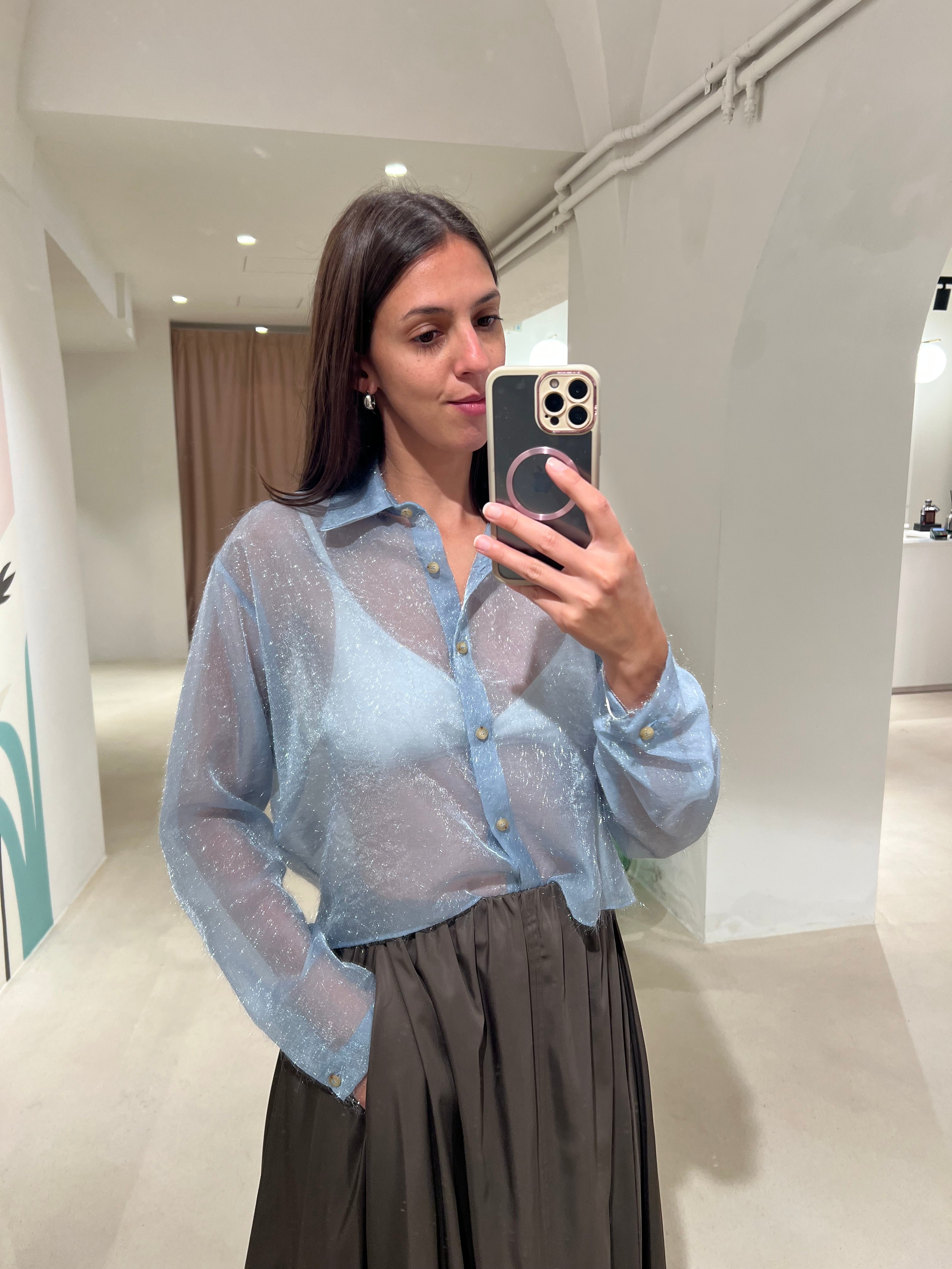 Camicia boxy frenge a manica lunga effetto trasparente