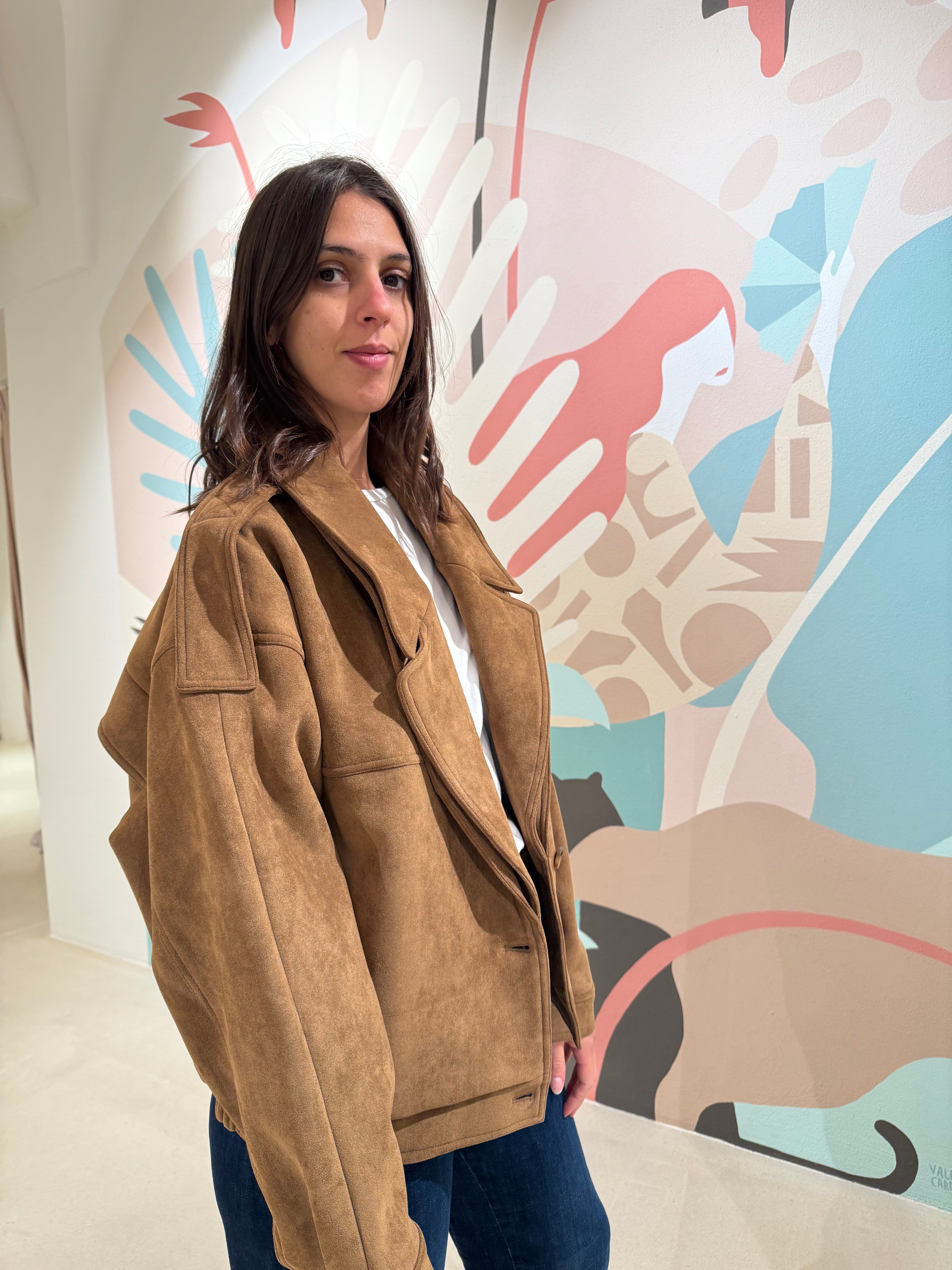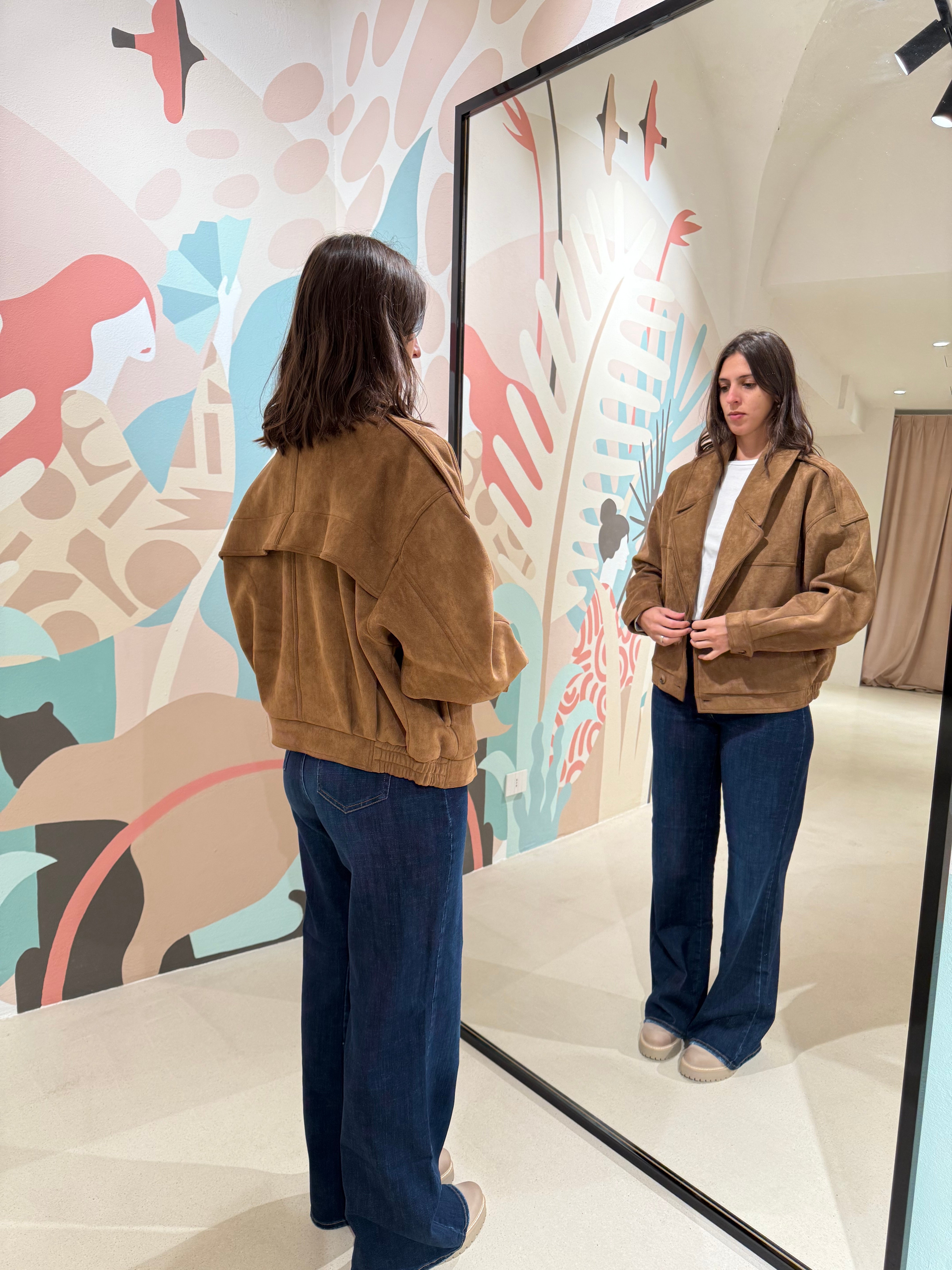 Bomber effetto scamosciato in ecopelle con chiusura zip frontale e tasche laterali