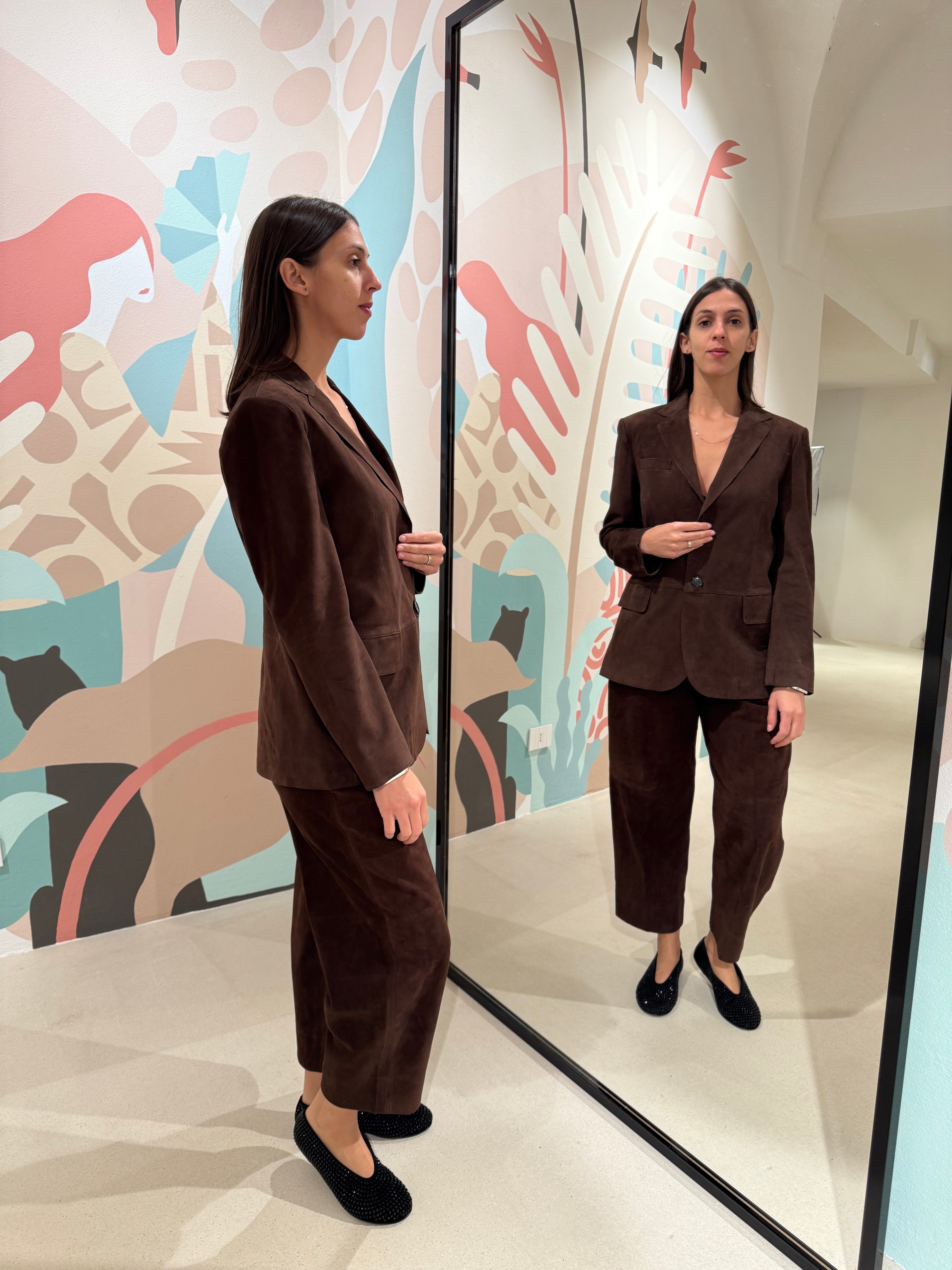 Giacca in pelle scamosciata con chiusura bottoni frontali