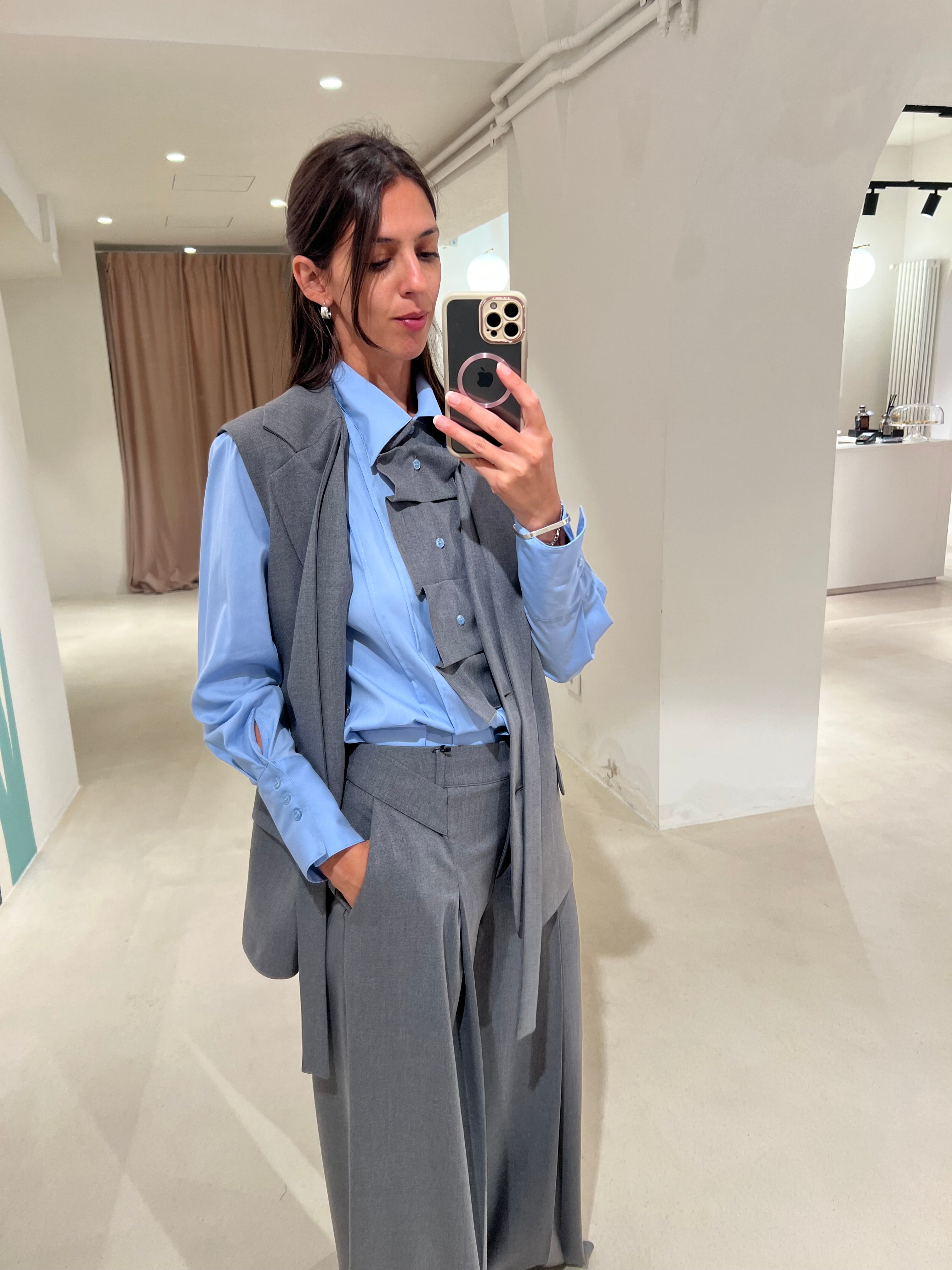 Gilet lungo con chiusura bottoni frontali e fusciacchine