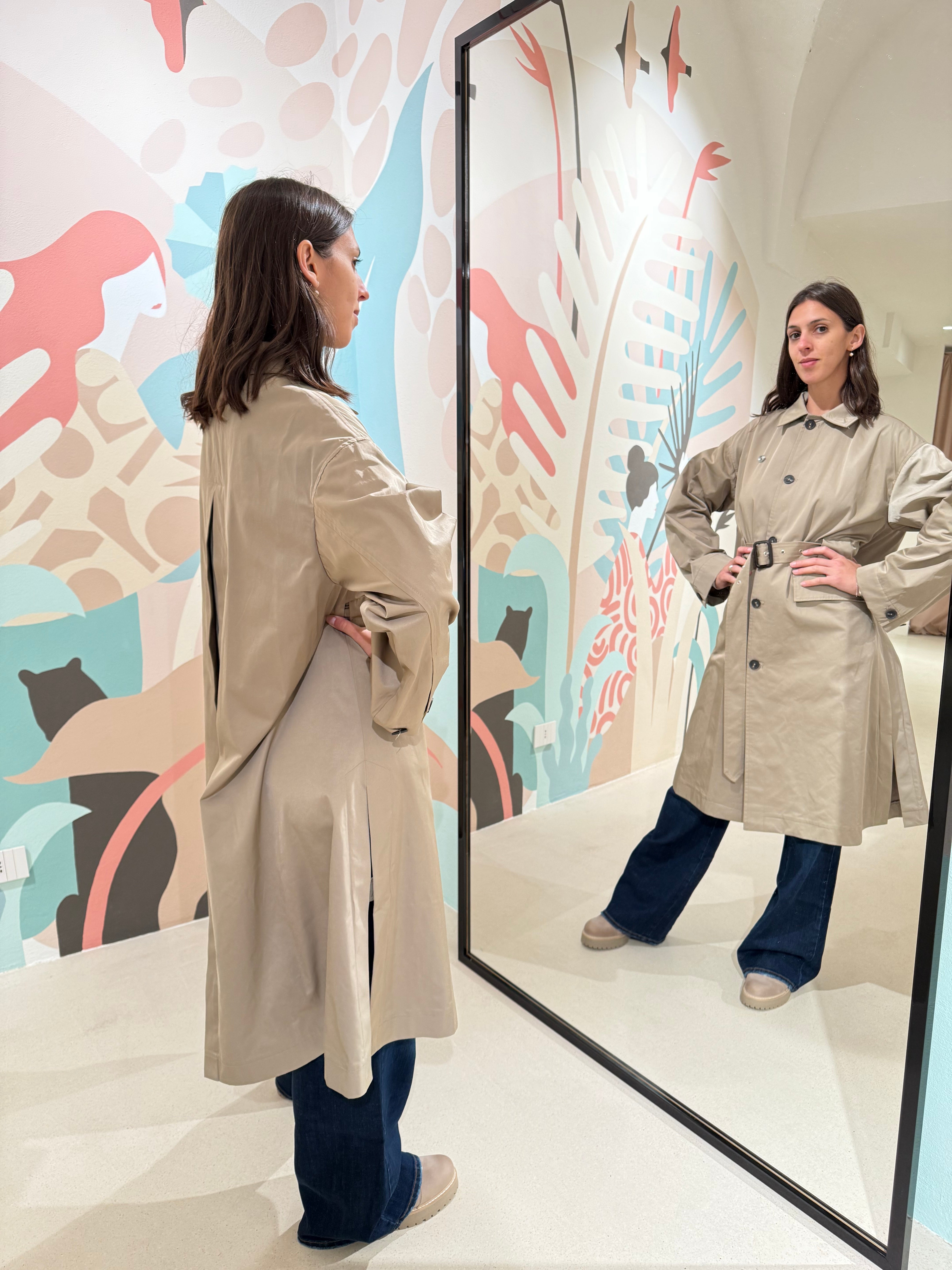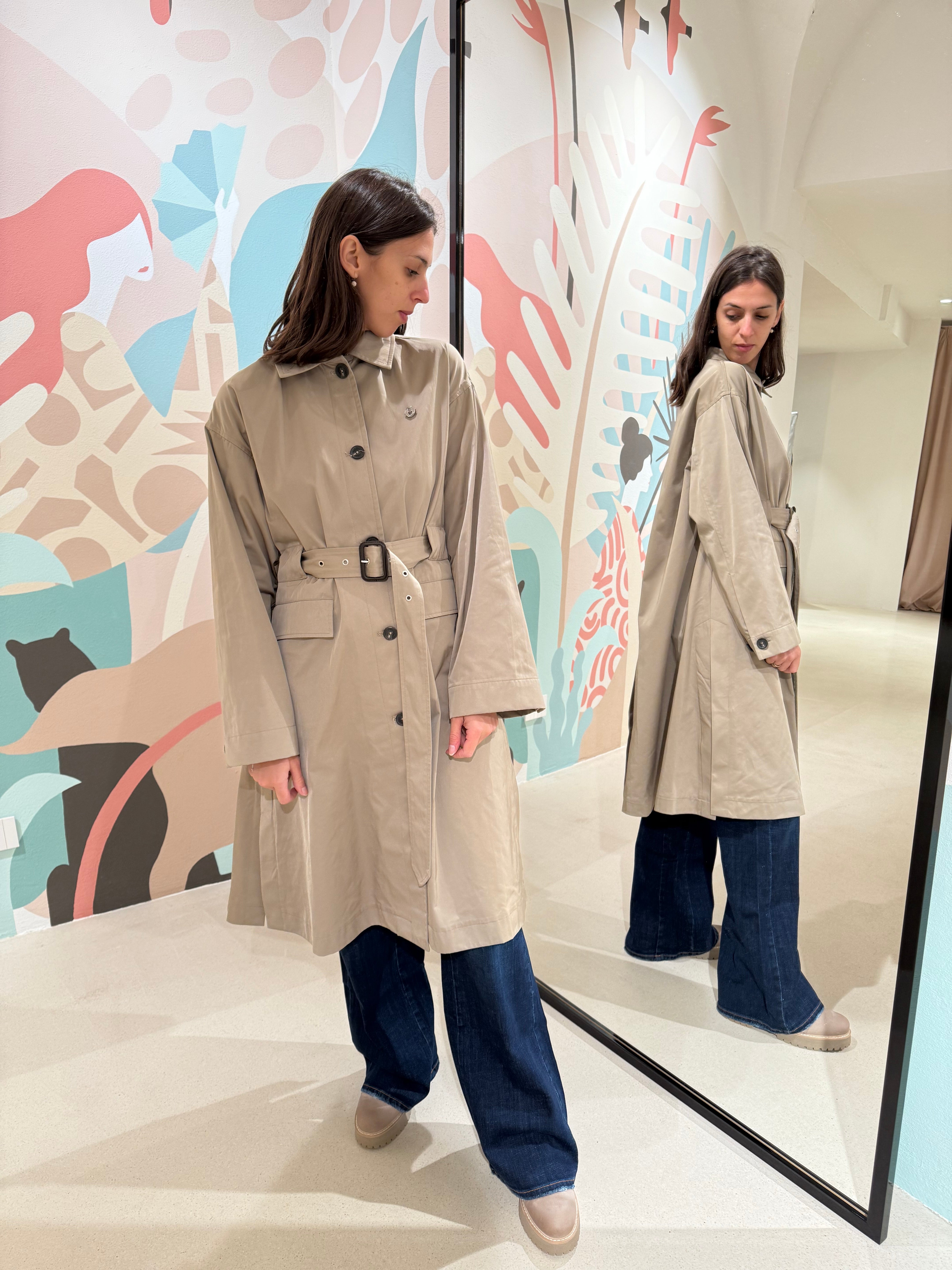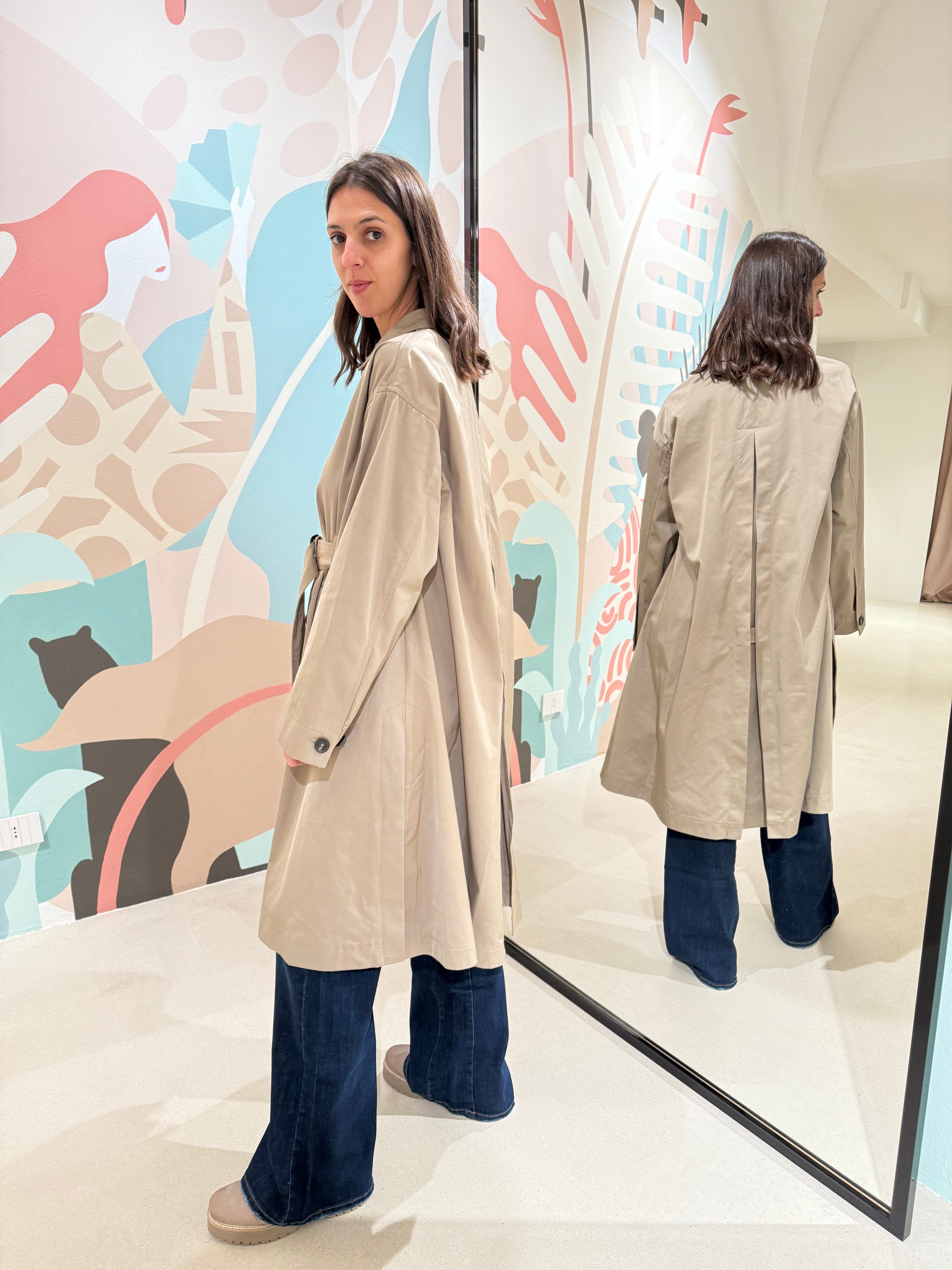 Trench a lunghezza midi con tasche laterali e cintura in vita removibile, chiusura a doppiopetto