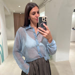 Camicia boxy frenge a manica lunga effetto trasparente