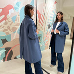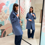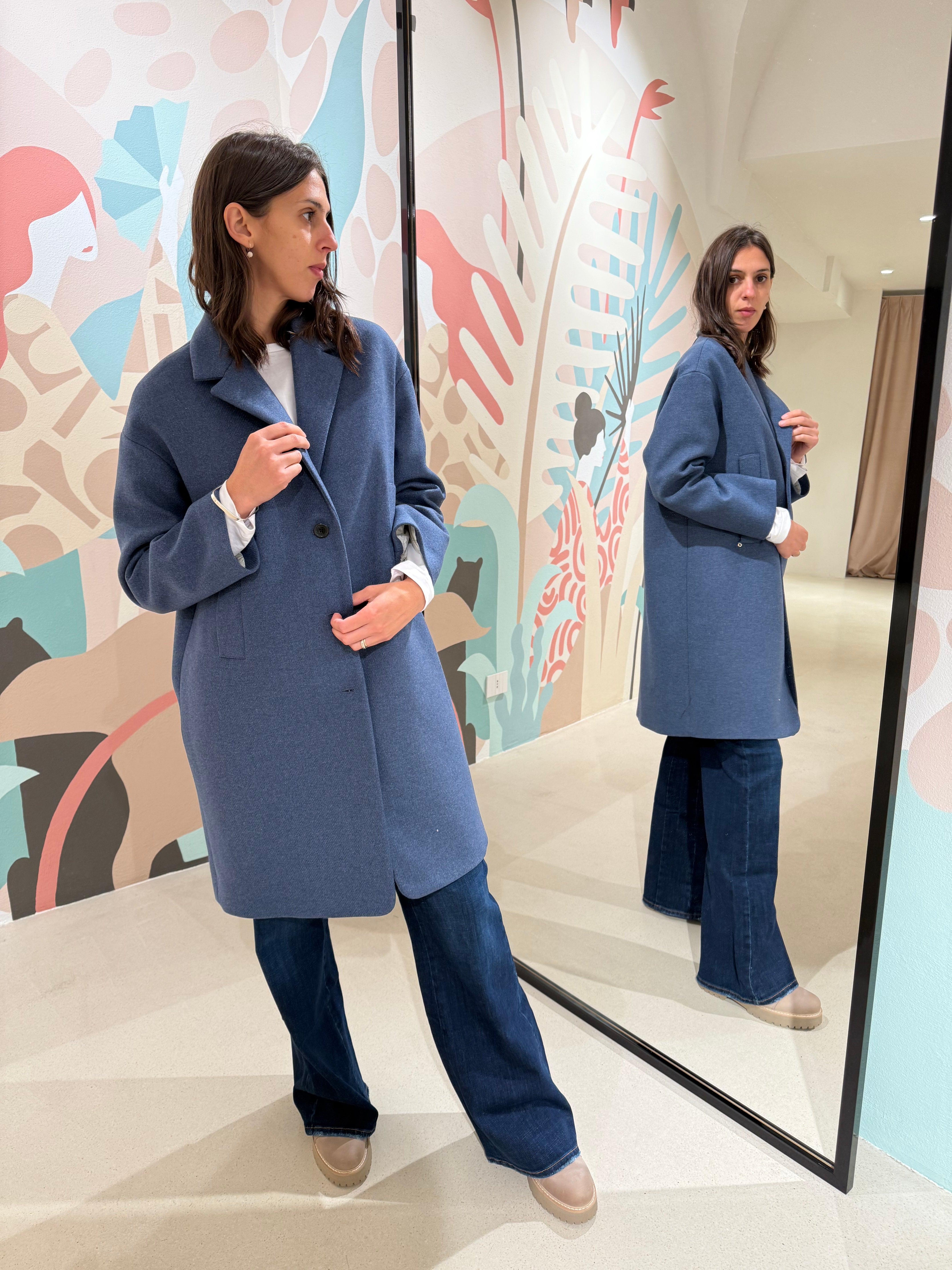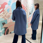 Cappotto con lunghezza midi, chiusura bottoni frontali, tasche laterali