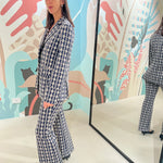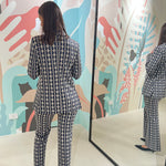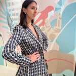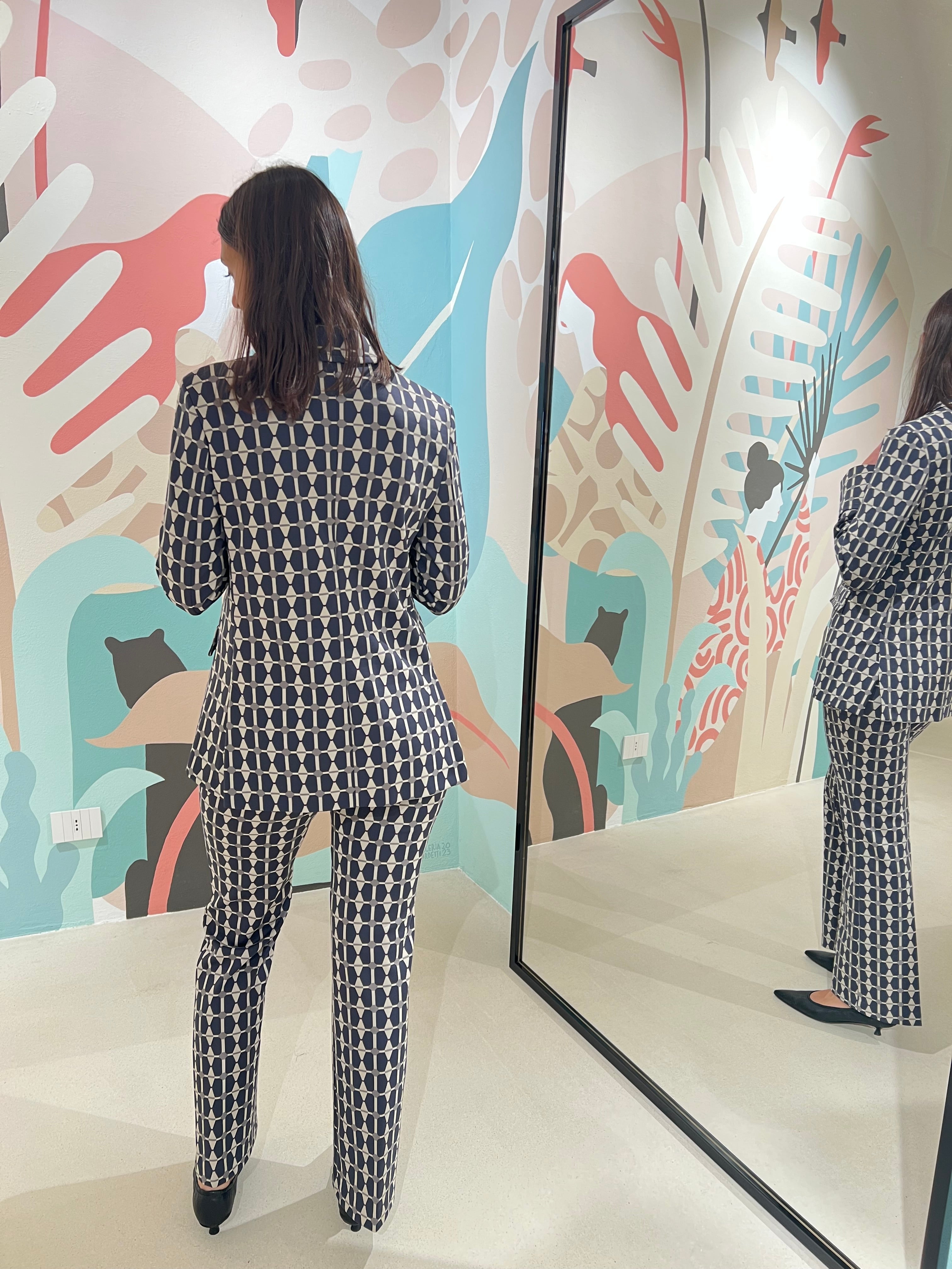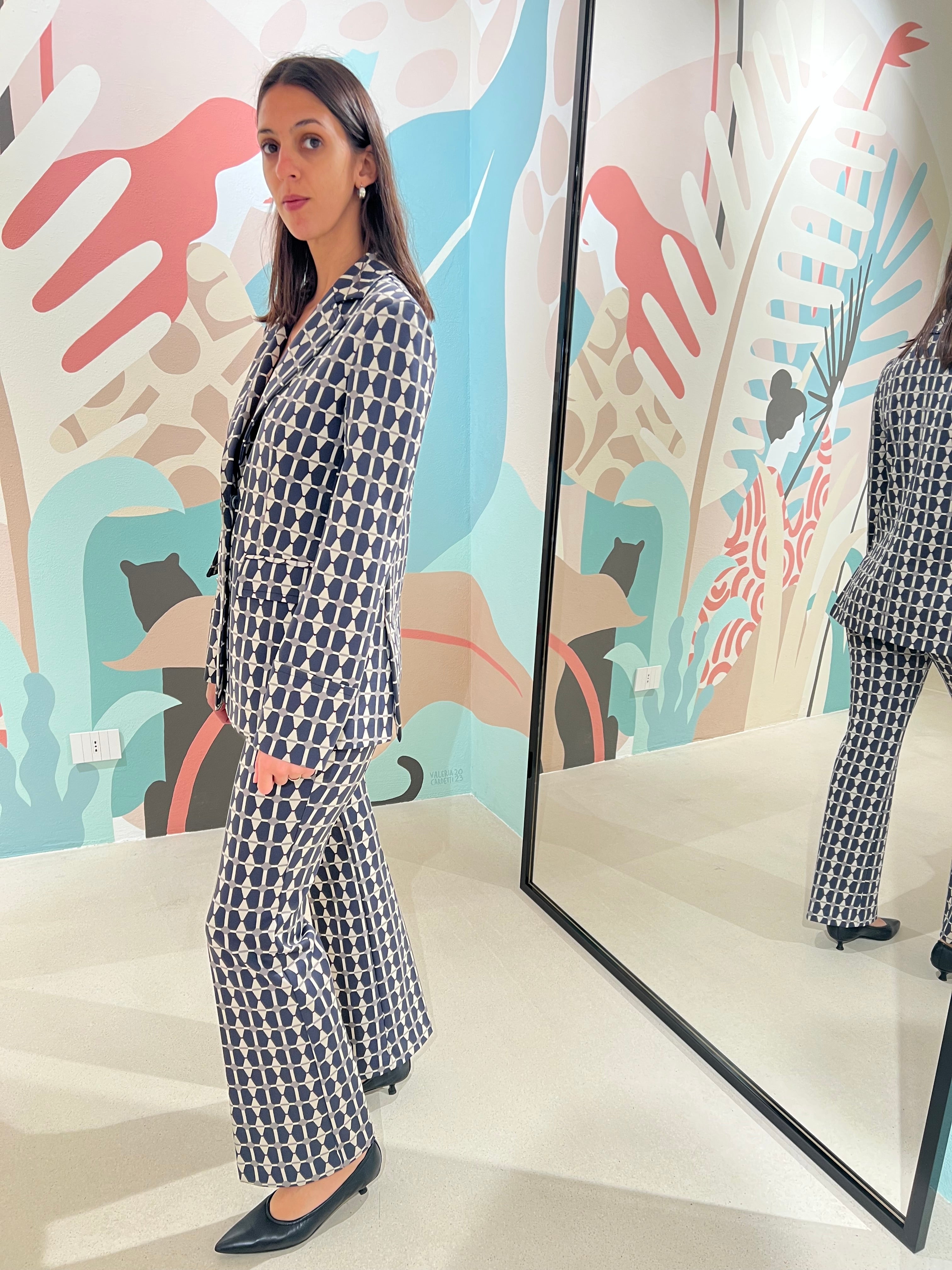 Giacca con vestibilitá slim, dettaglio bottoni centrali lavorati, fantasia geometrica