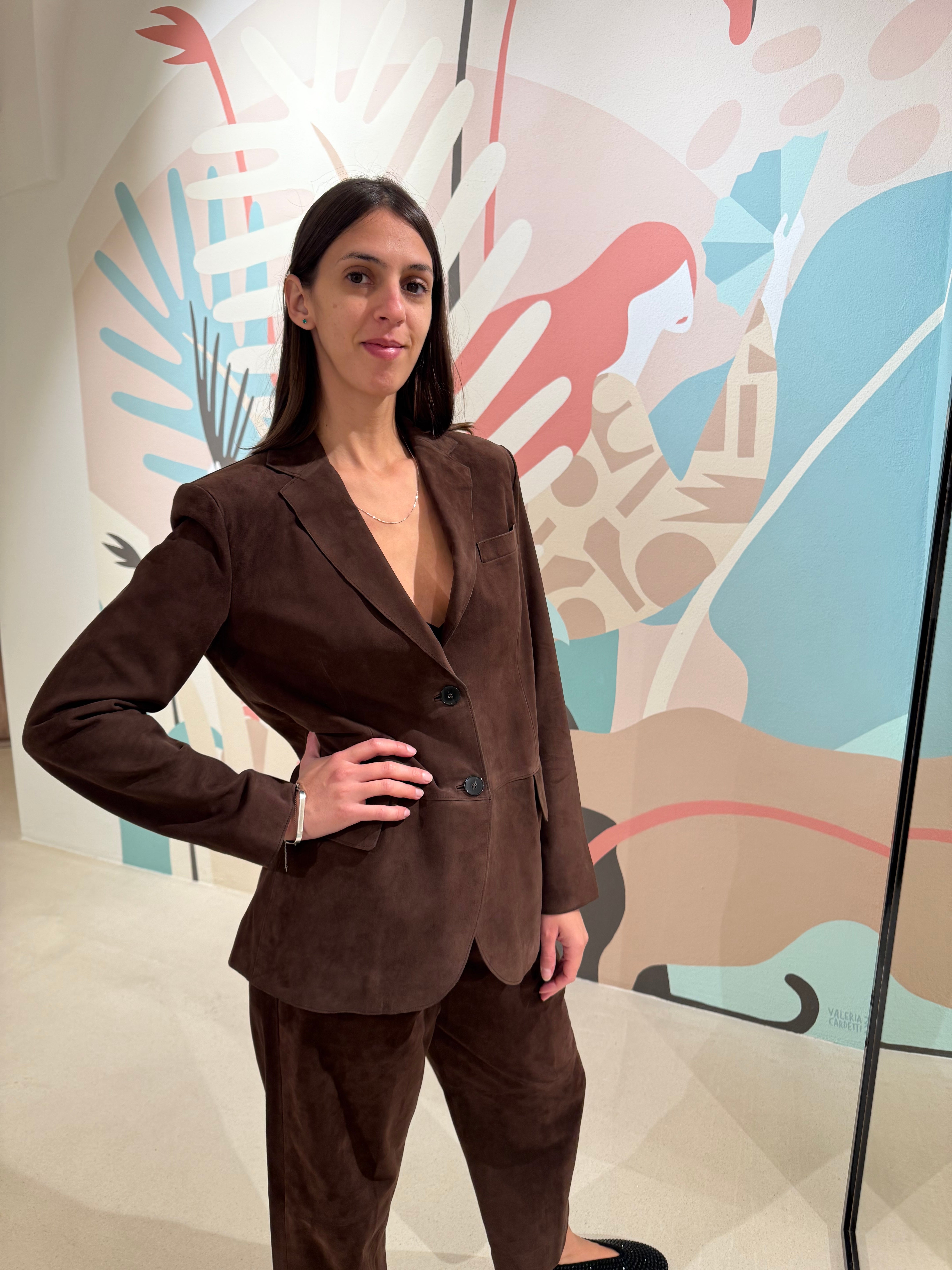 Giacca in pelle scamosciata con chiusura bottoni frontali