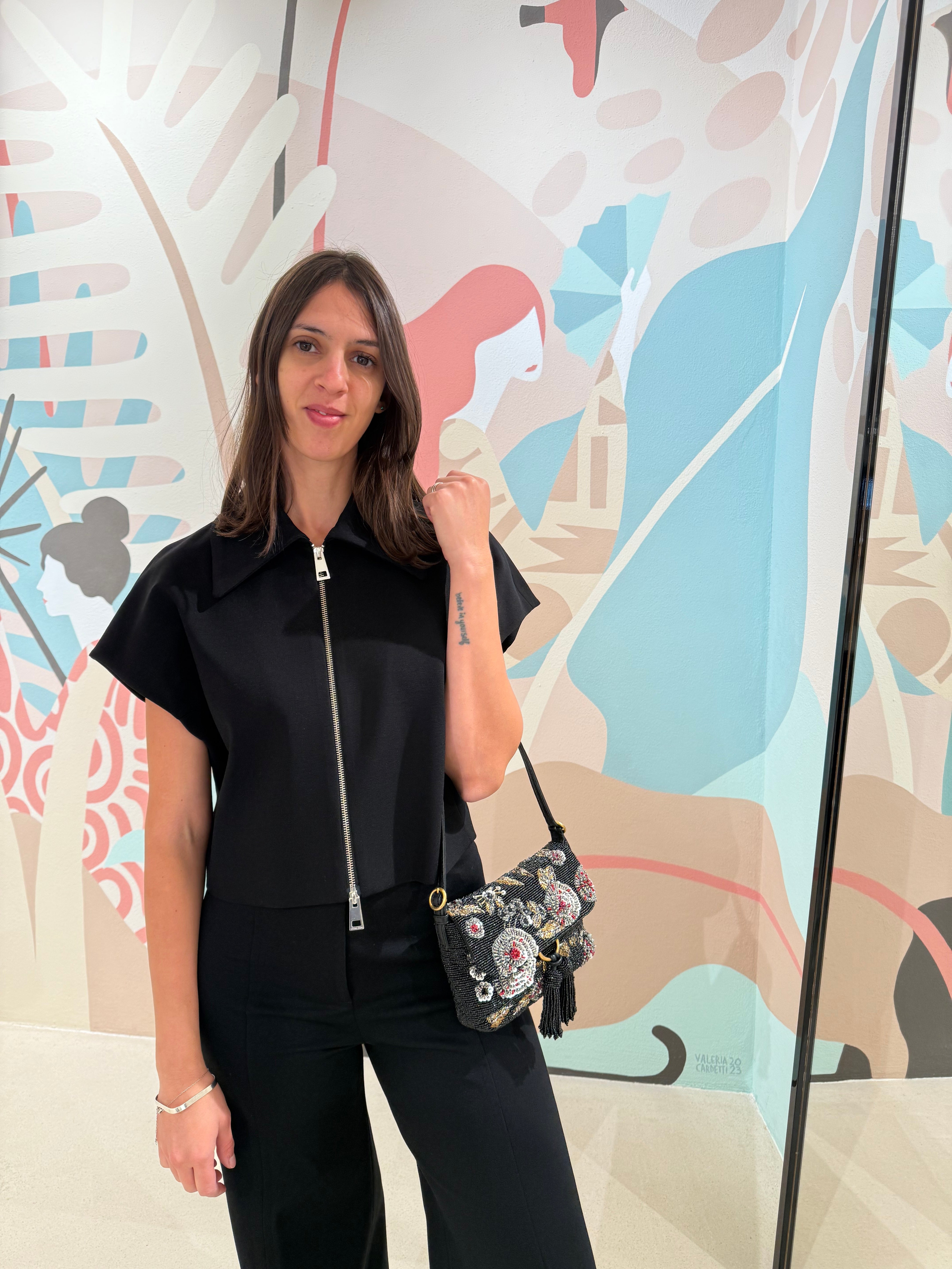 Gilet in punto Milano con chiusura zip frontale a manica corta