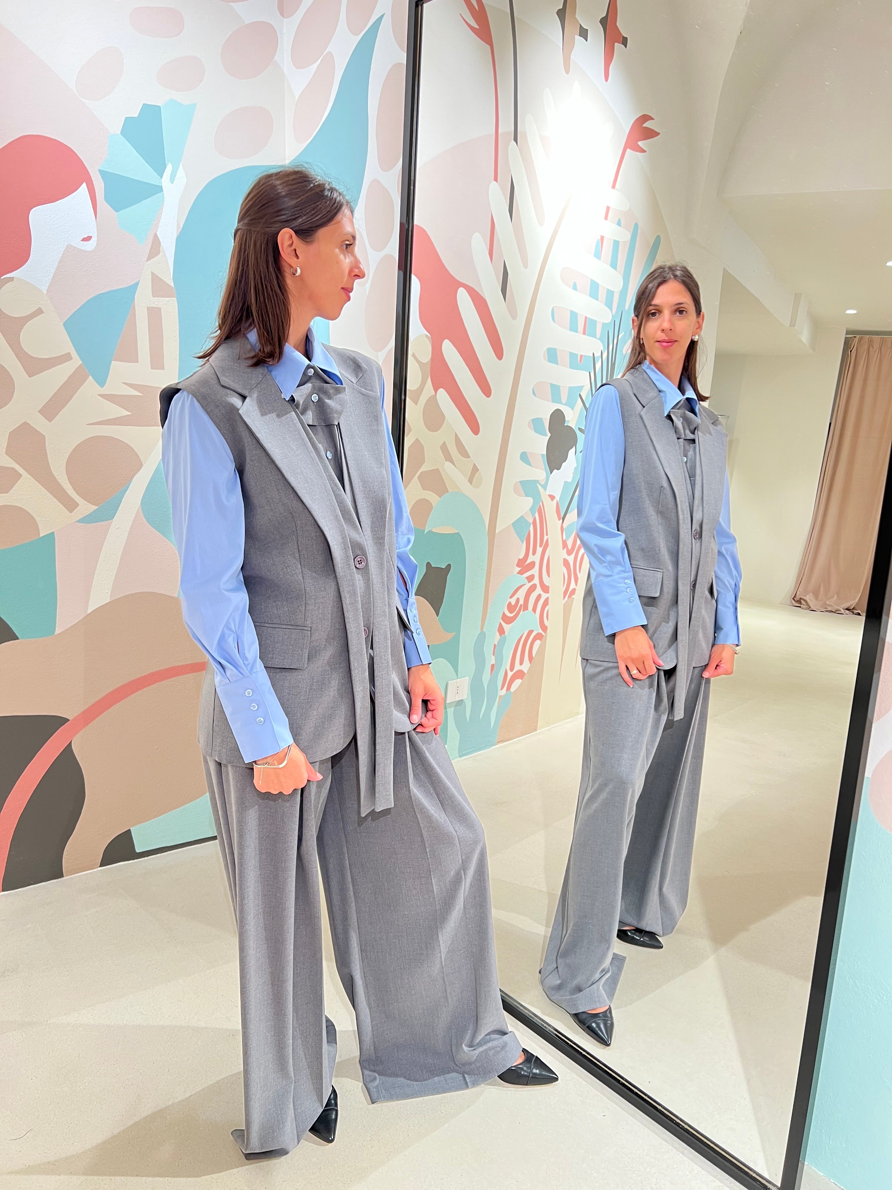 Gilet lungo con chiusura bottoni frontali e fusciacchine