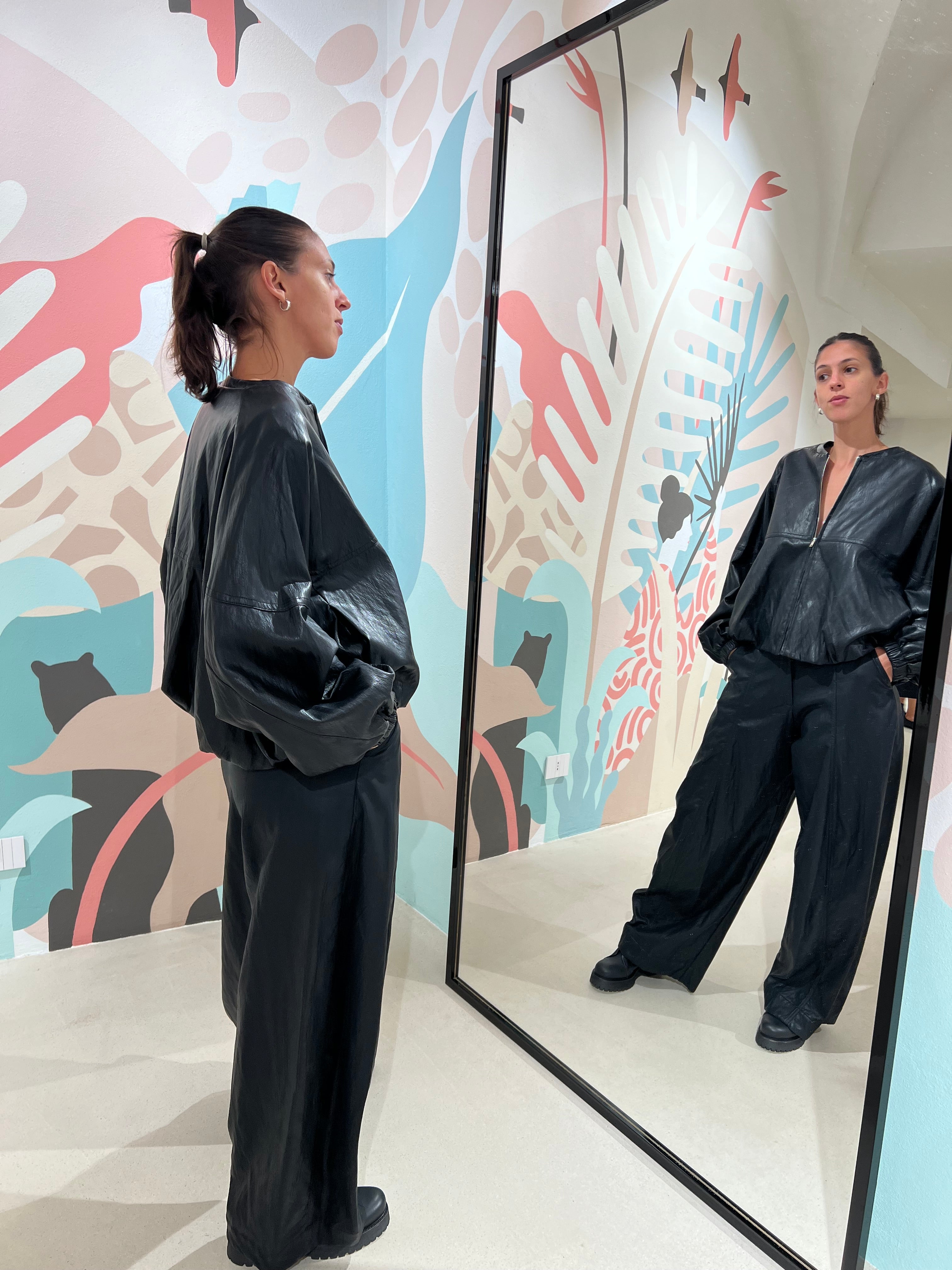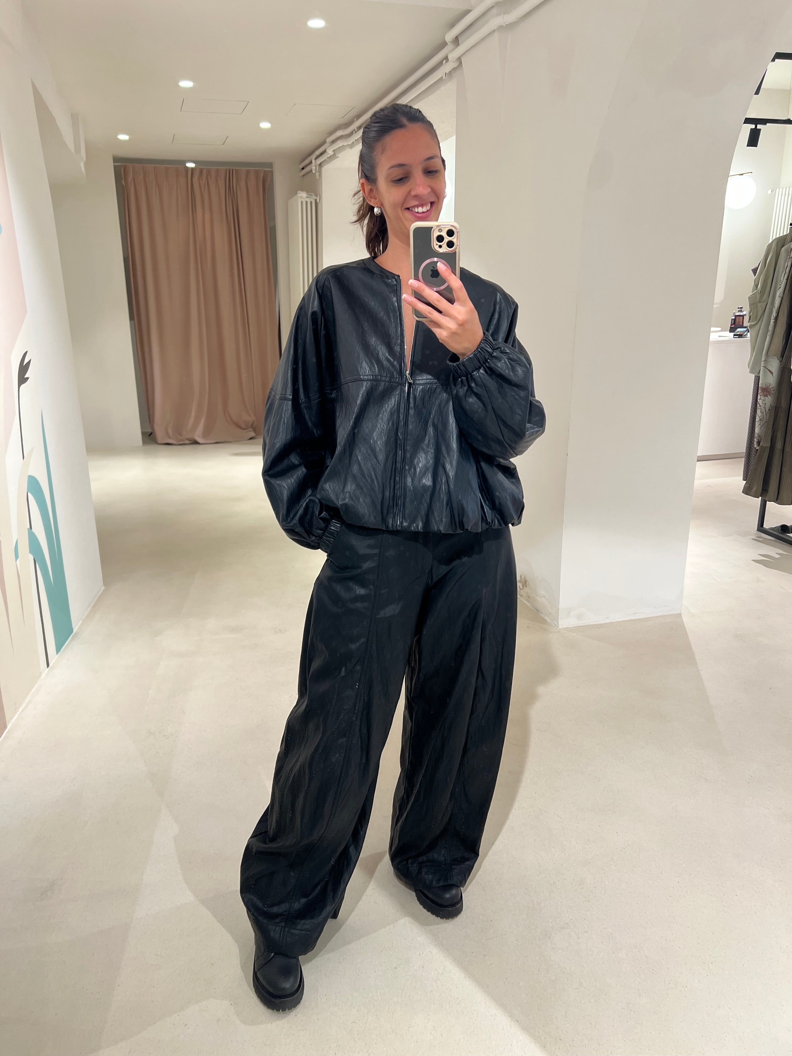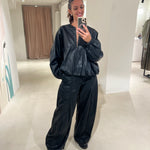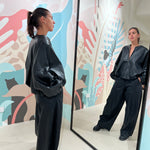 Pantalone baggy in ecopelle con tasche laterali