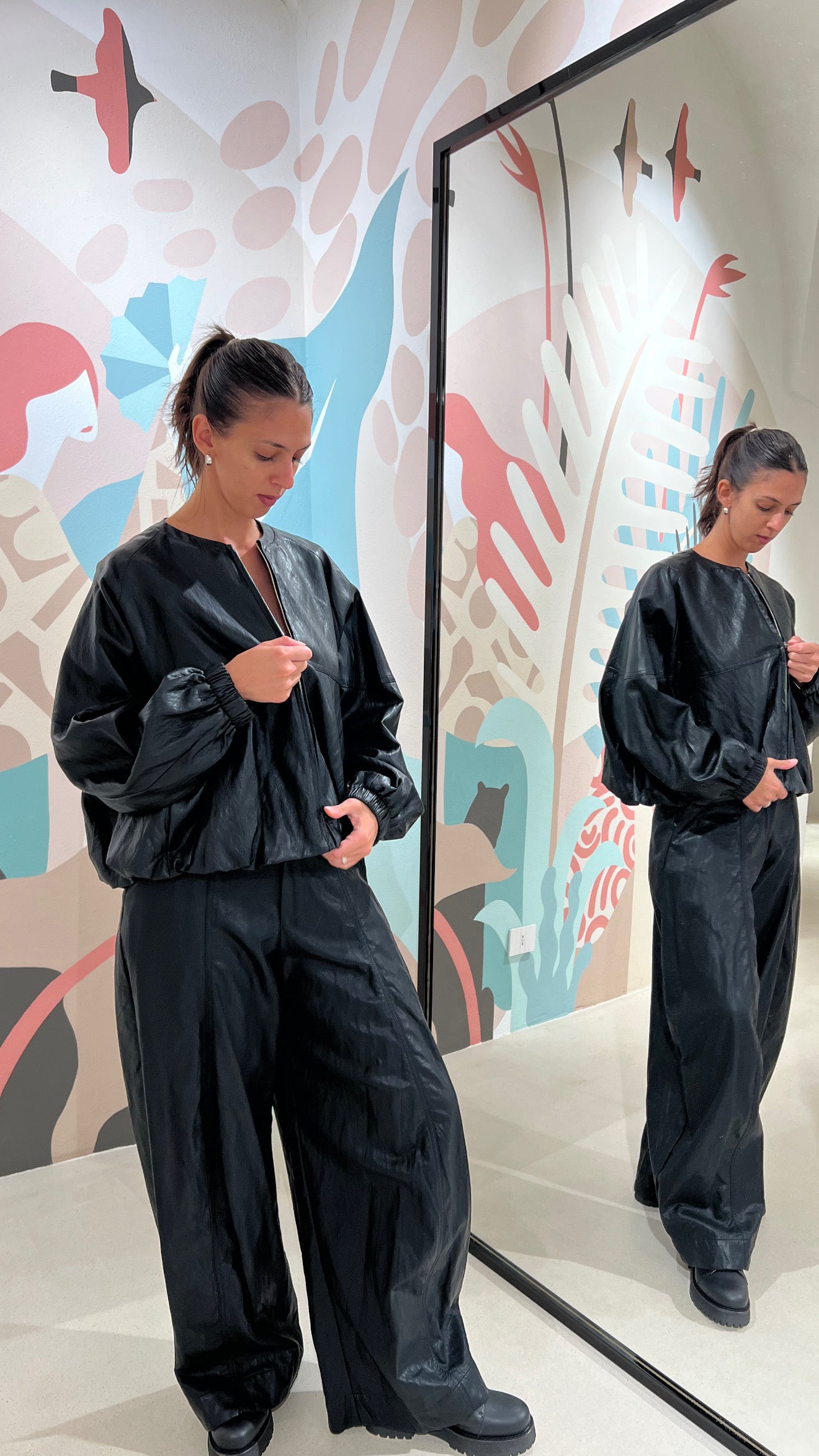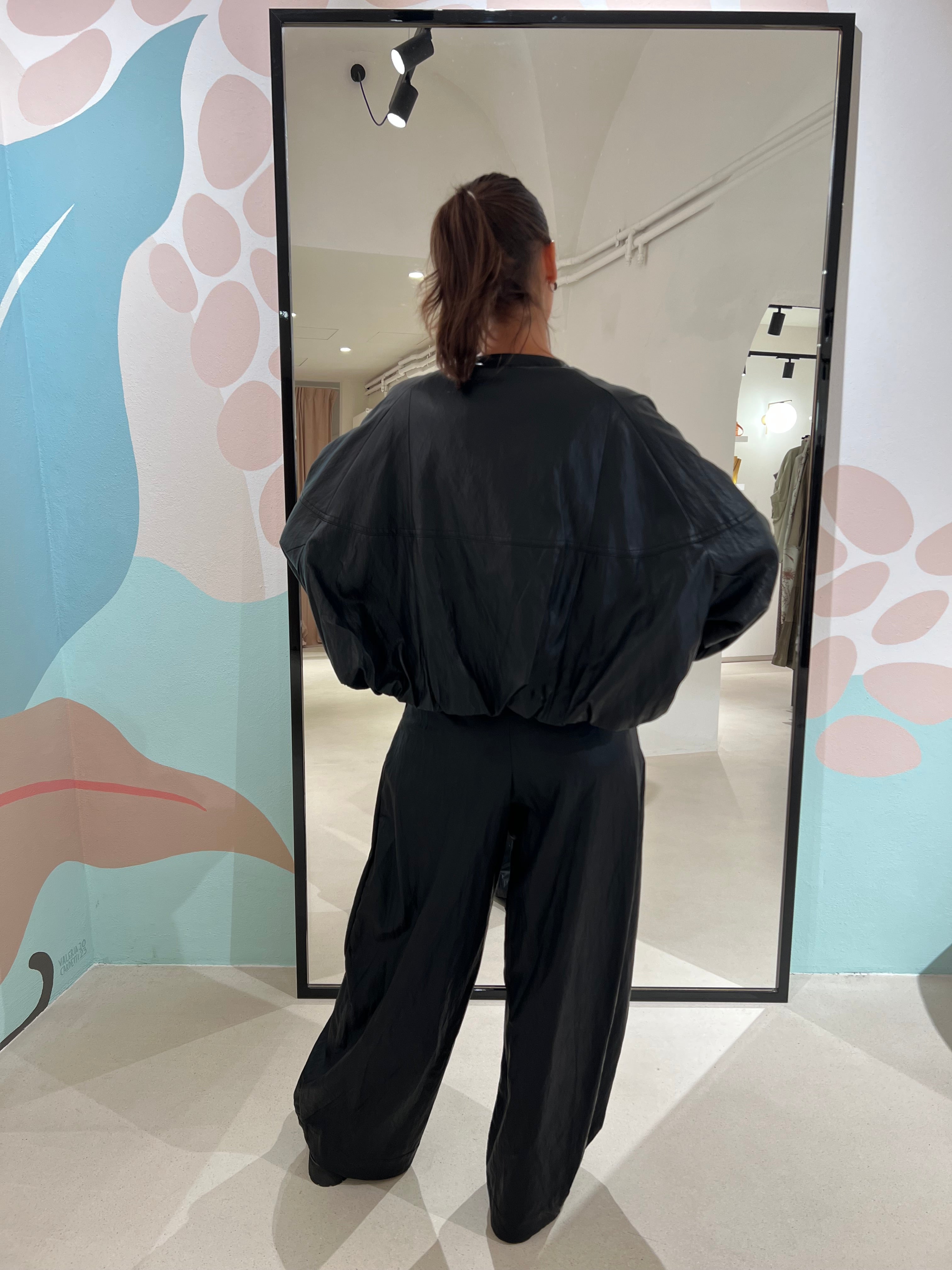 Pantalone baggy in ecopelle con tasche laterali