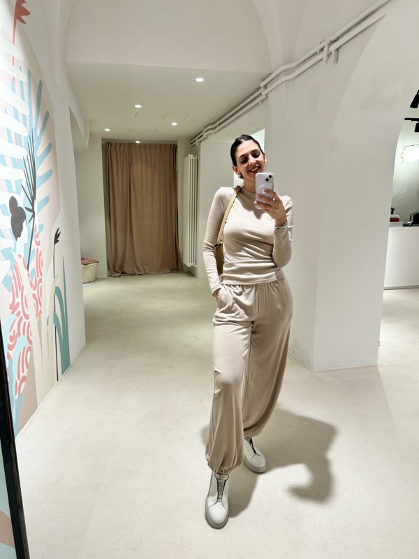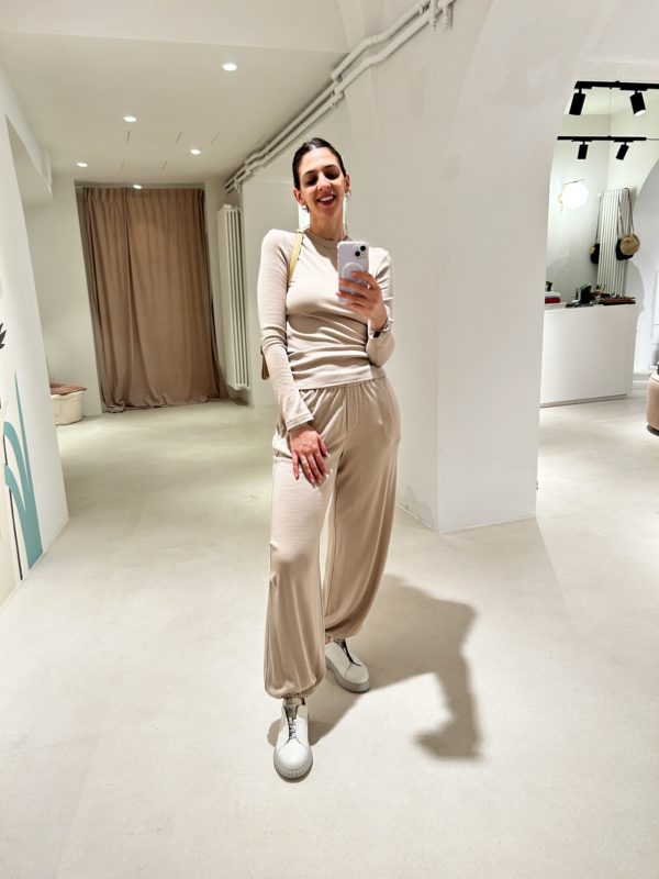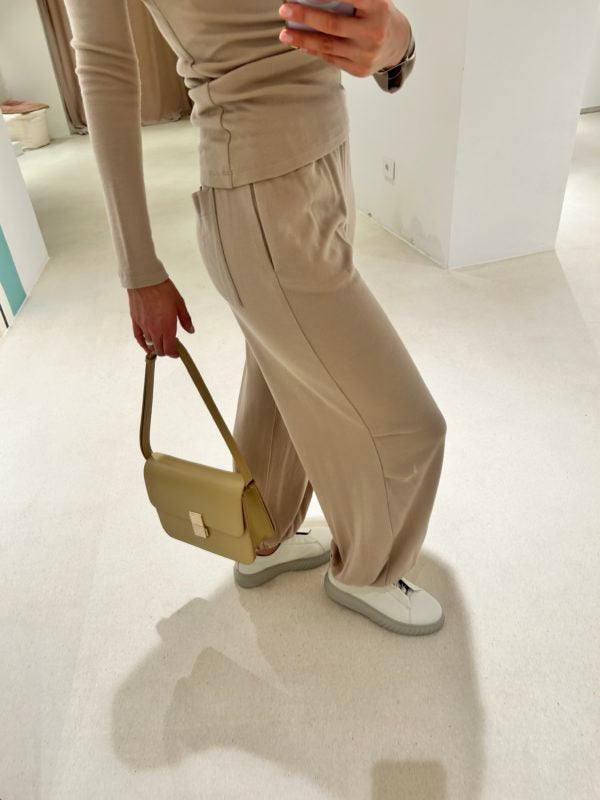 Pantalone sand in lana con chiusura elastico alla caviglia