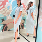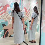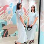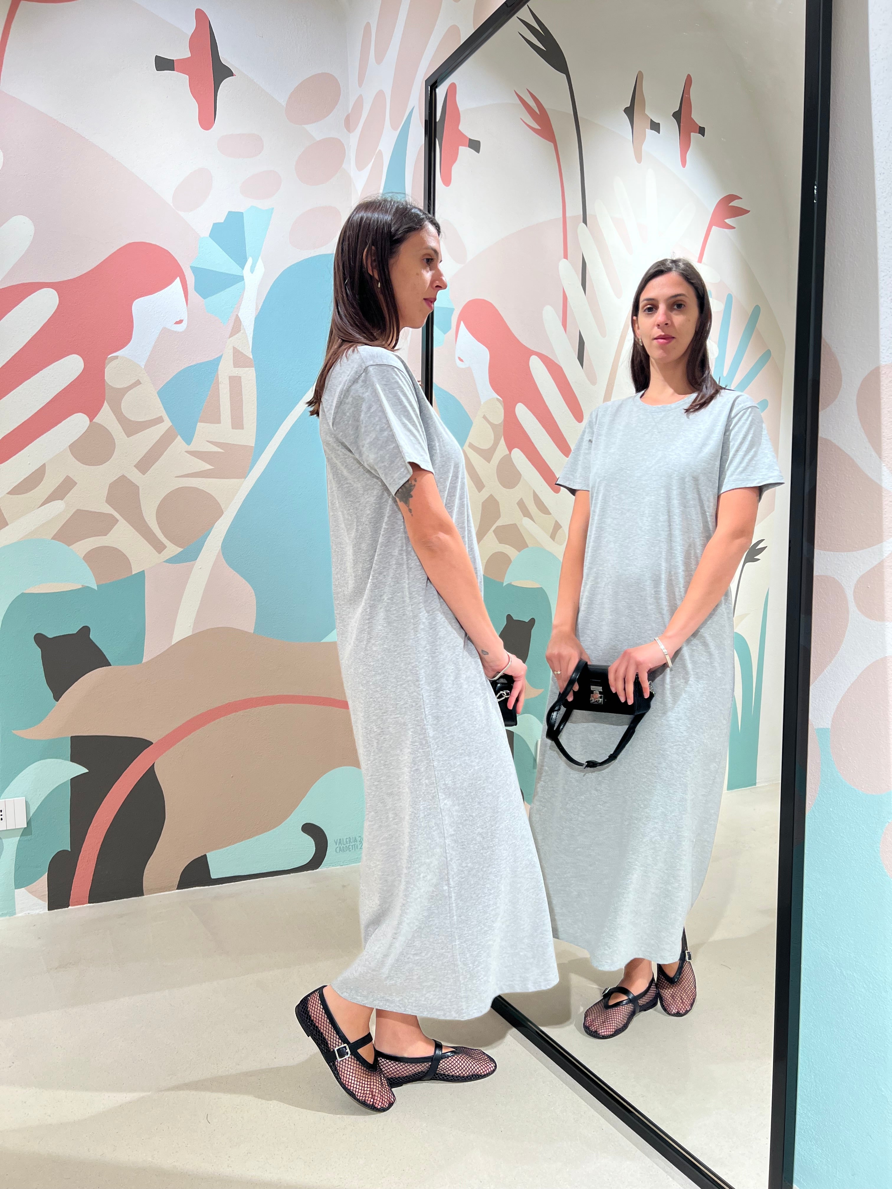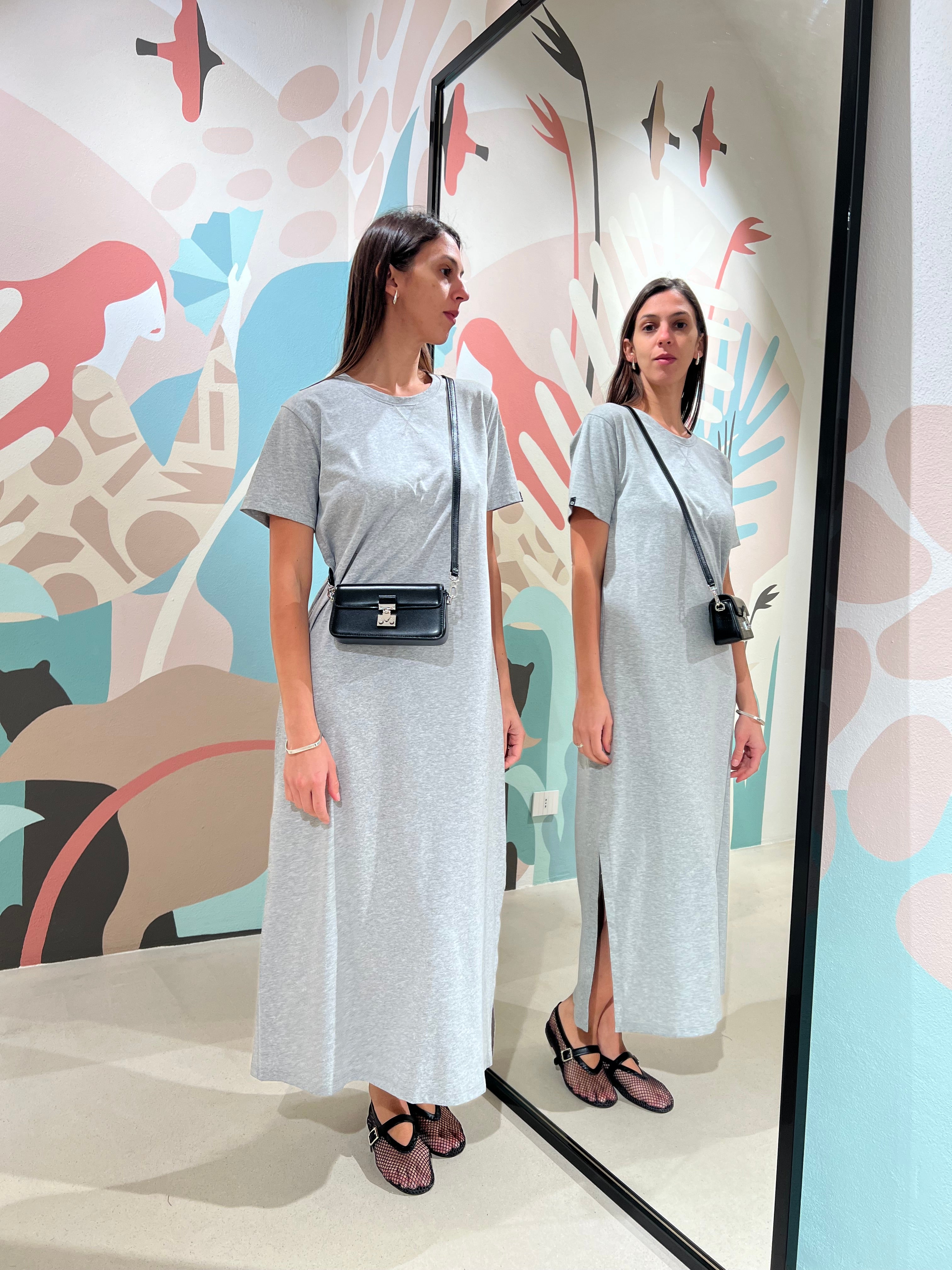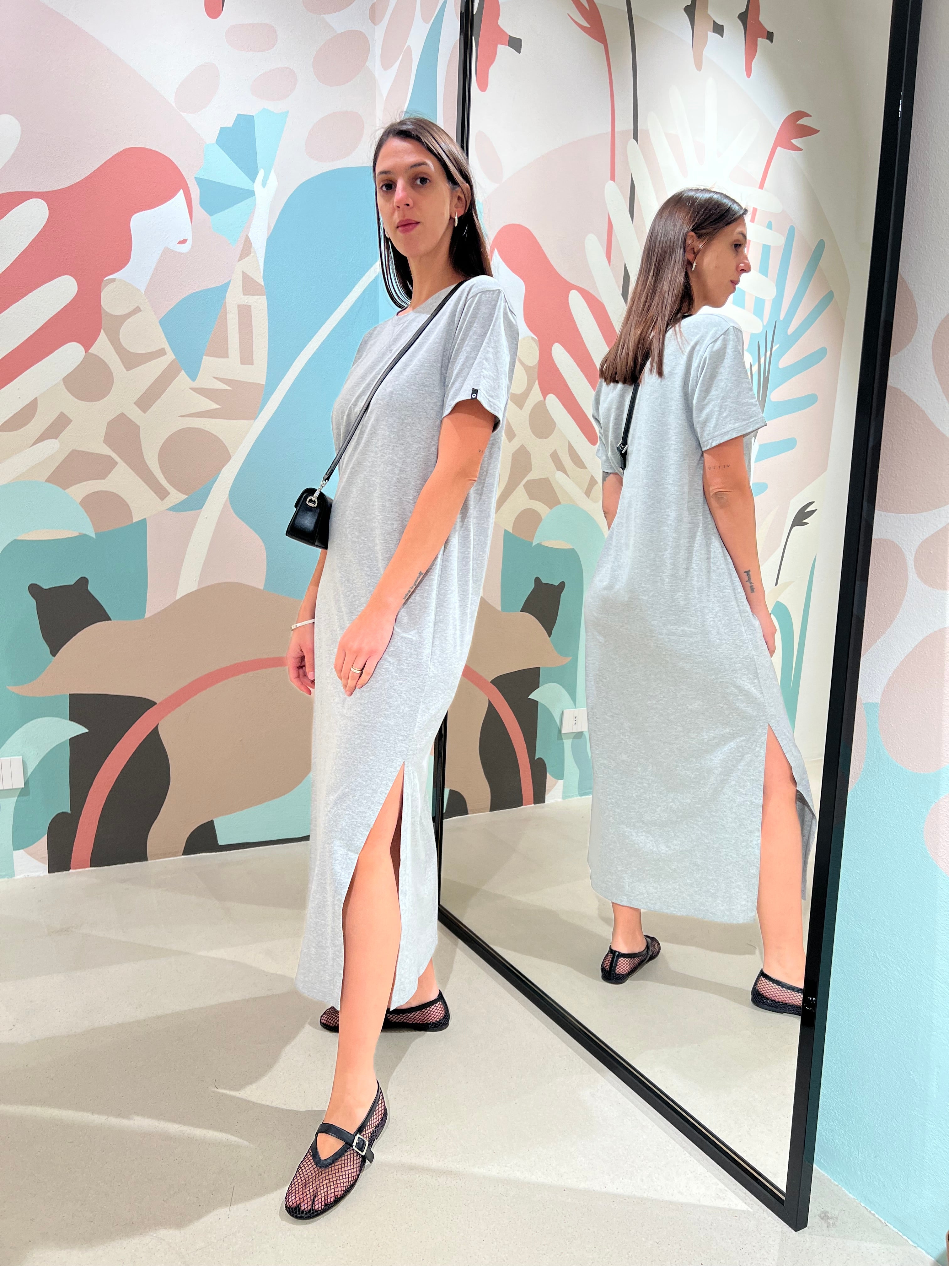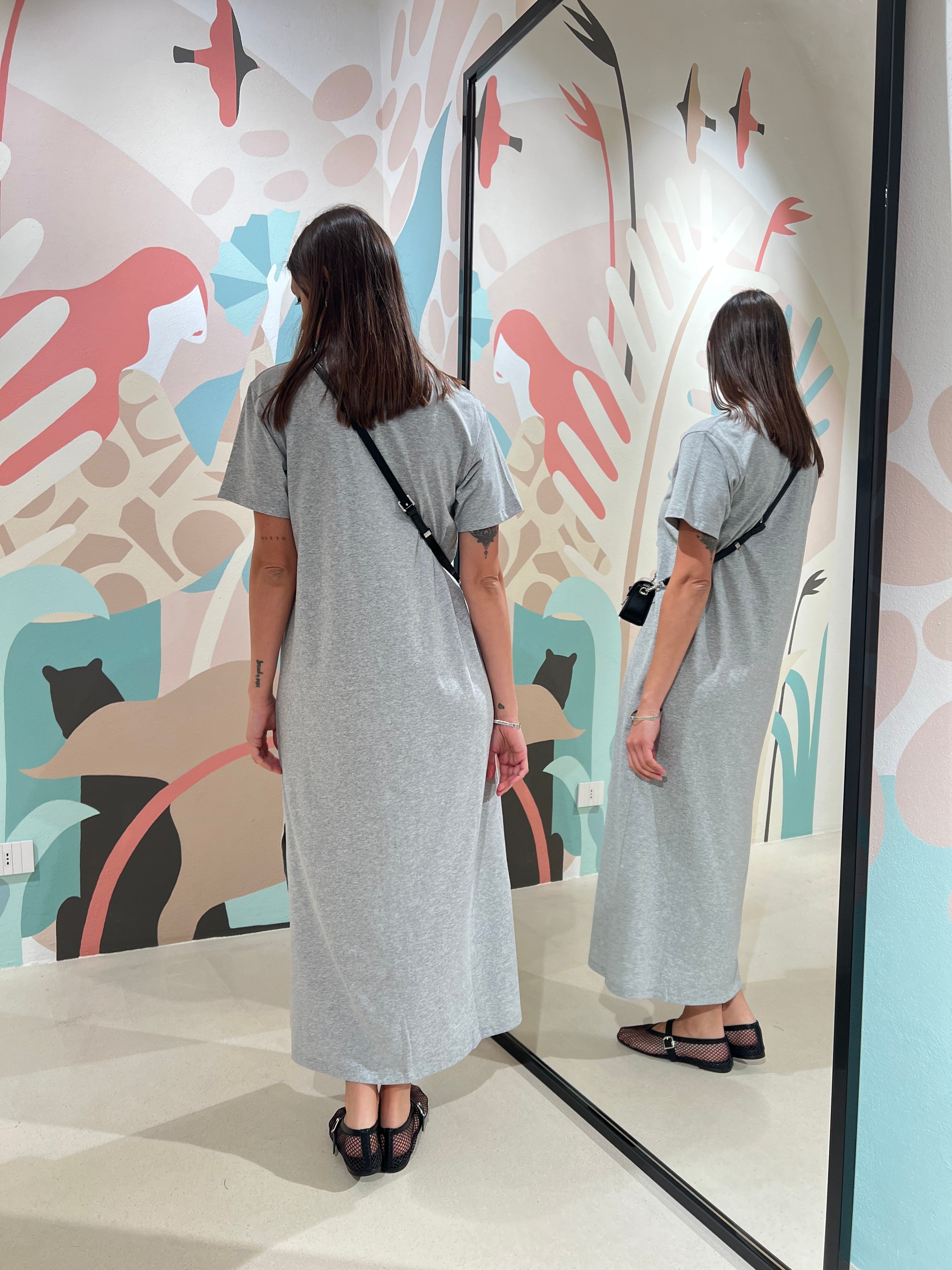 Abito lungo in cotone con scollatura arrotondata e spacco laterale