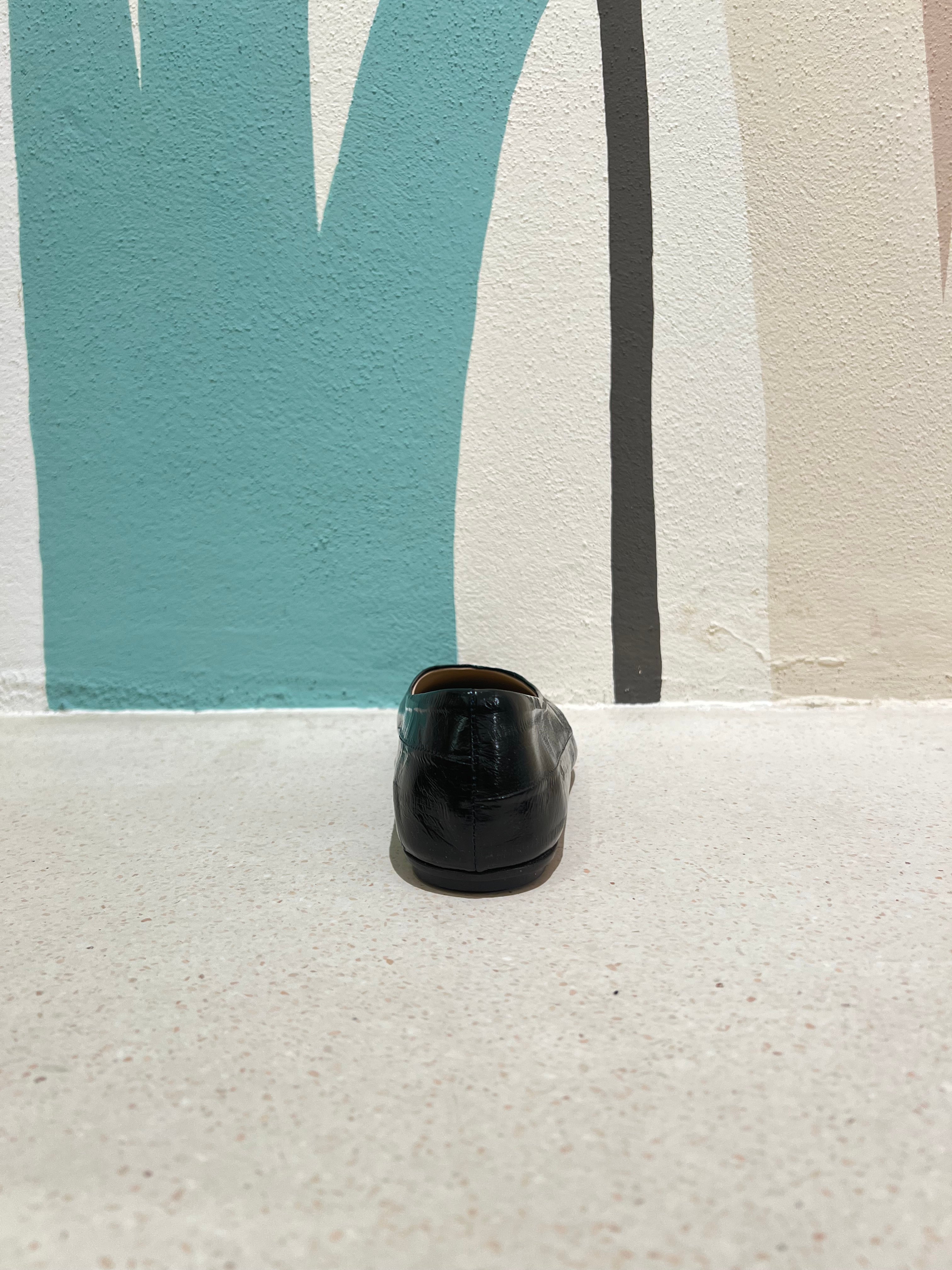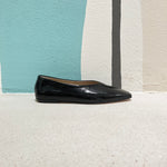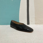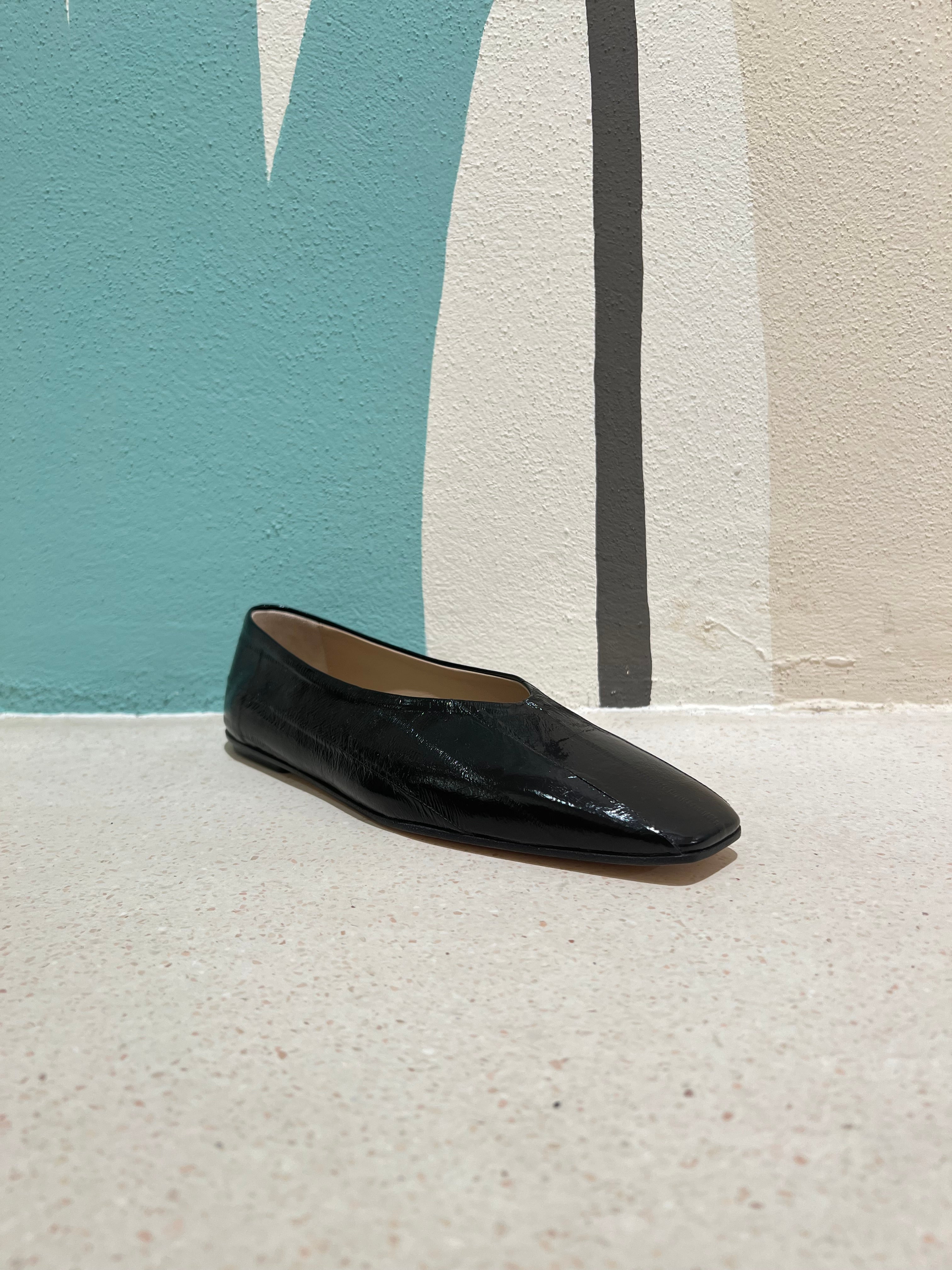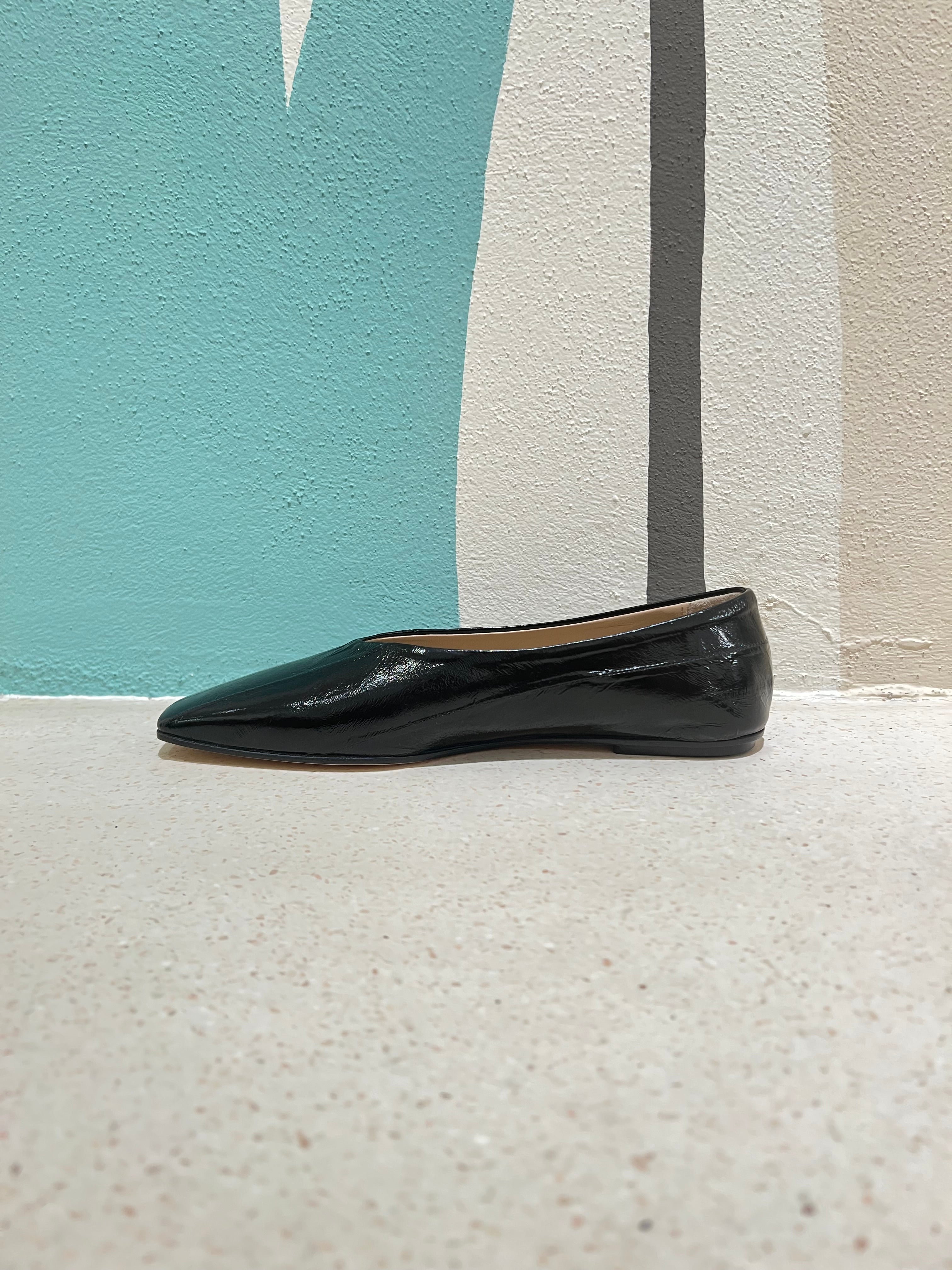 Ballerina a punta squadrata in pelle effetto lucido